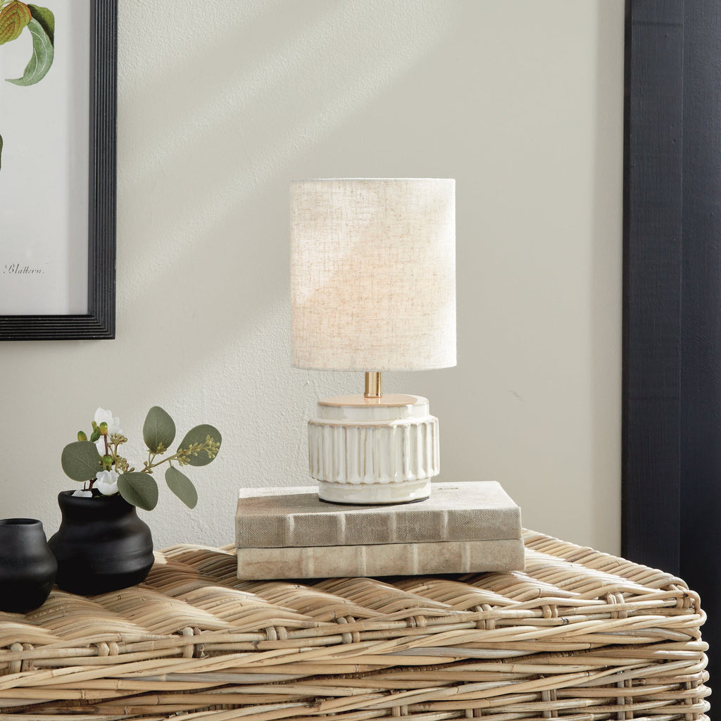 Introducing our elegant collection of ceramic lamps, designed to enhance any interior space. Each lamp in this collection features a sophisticated white ceramic base paired with a linen shade, offering a timeless and modern aesthetic.