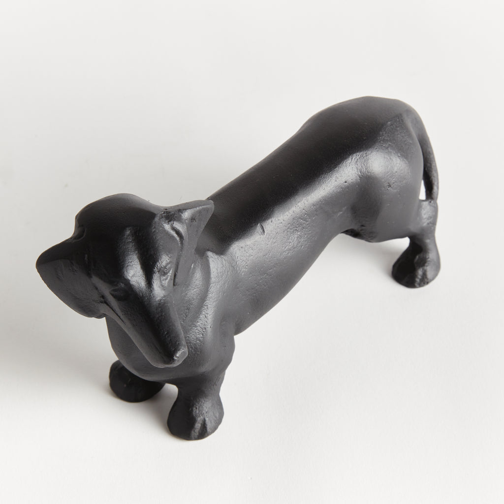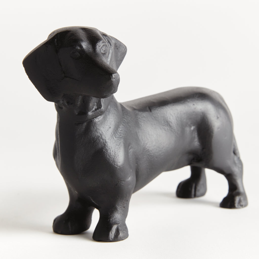 Made of a heavy cast aluminum using a centuries old sand cast method, this regal dachshund sculpture is worthy of a prime bookshelf spot. With realistic signature features, it's a darling addition to a side table or ottoman as well.