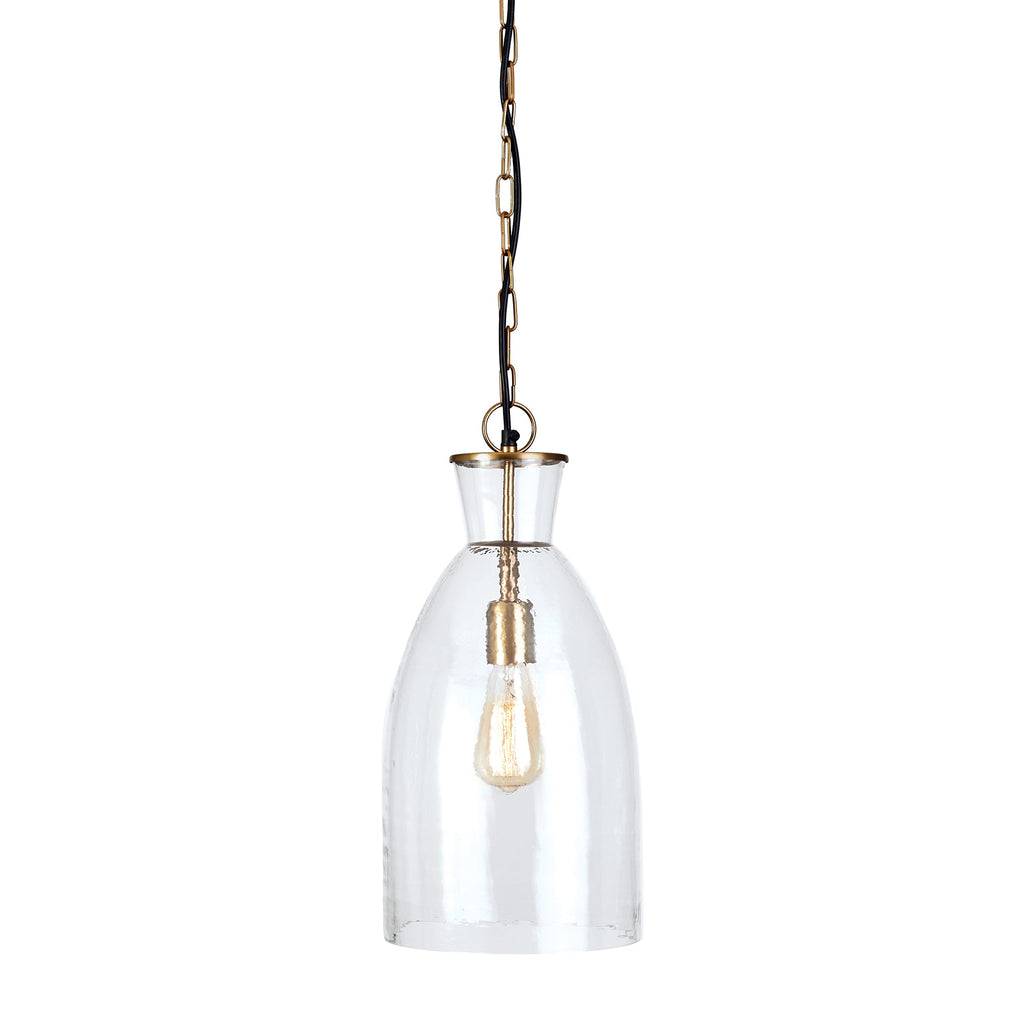 In a classic mix of warm brass and seeded glass, the Belle pendant is a traditional fixture. Over an island, in an entry or foyer, a solid choice.