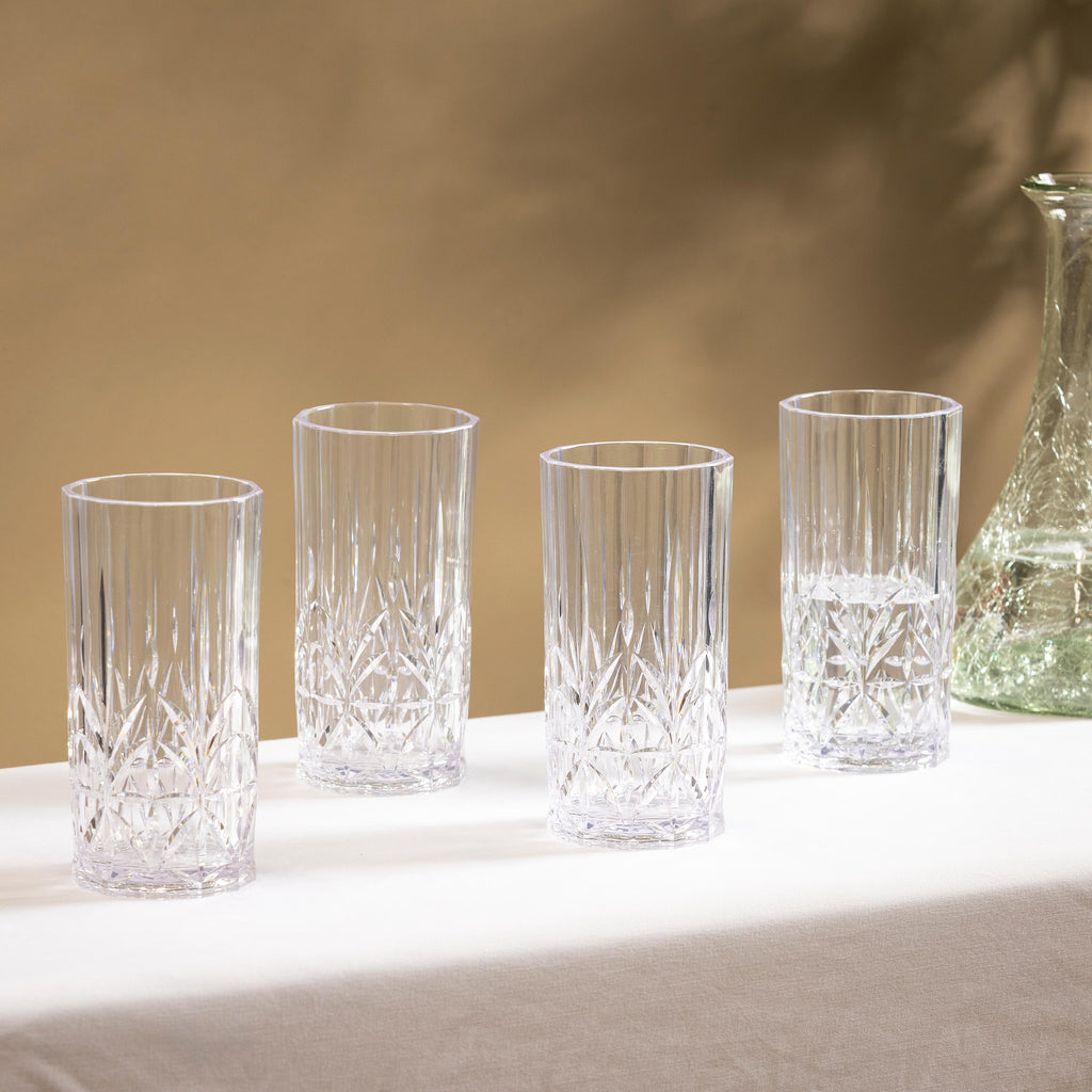 Elevate your drinkware collection with this set of shatterproof high tumblers, designed for elegance and durability. Perfect for any occasion, these tumbler glasses add a touch of sophistication to your everyday gatherings.