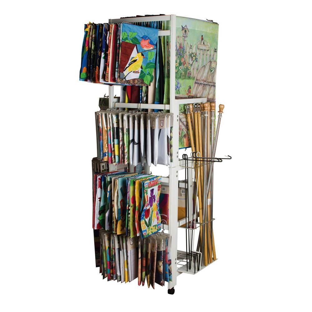 Showcase your vibrant collection of flags with this versatile Metal Flag Display. Designed for both indoor and outdoor use, this display is perfect for retail environments or at-home showcases. The sturdy metal construction ensures durability, while its sleek design complements any setting. With ample space to hold multiple flags, this display keeps your collection organized and easily accessible. Measuring 25 inches in length, 90 inches in width, and 24 inches in height, it offers a compact yet spacious solution for all your flag displaying needs.