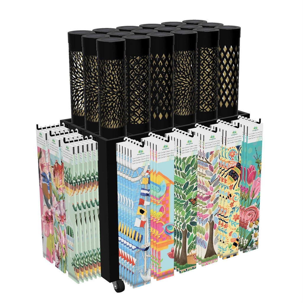 Elevate your garden’s appeal with this sophisticated Solar Garden Column Display. Perfect for showcasing a variety of garden essentials, this merchandiser features a sleek black frame with intricate cut-out designs that allow solar lighting to cast beautiful patterns. Measuring 26.8 inches in length, 14 inches in width, and 25.5 inches in height, it provides ample display space while maintaining a compact footprint. Ideal for garden centers or outdoor retail environments, this versatile display unit combines functionality with a touch of elegance, making it an attractive focal point for any setting.