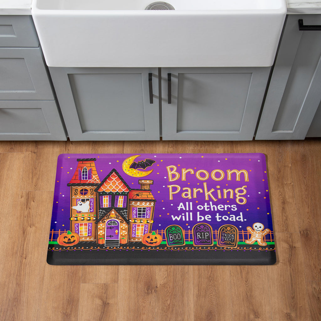 Add a touch of Halloween fun to your kitchen with the Trick or Sweets Anti-Fatigue Mat. Measuring 30" x 18", this mat combines festive design with practical comfort. Its vibrant Halloween theme, featuring playful pumpkins and ghostly characters, makes it perfect for seasonal decor. Crafted to reduce fatigue, it provides cushioning support for your feet during long periods of standing. The durable construction ensures longevity, while the non-slip backing keeps it securely in place.