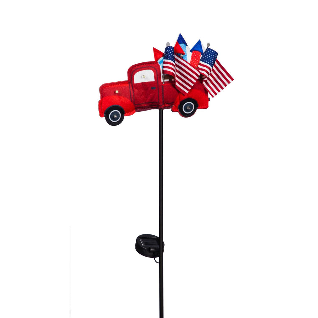 Illuminate your garden with patriotic flair using the Americana Forever Botanicals Lit Fabric Stakes. These vibrant stakes, measuring 36 inches in height, feature a charming assortment of designs including a classic red truck, a patriotic star, and the American flag. Crafted from durable fabric, they are perfect for adding a festive touch to your outdoor space during national holidays or year-round. The built-in lighting enhances their visibility at night, creating a warm and inviting atmosphere. Easy to install, these stakes are a delightful way to showcase your patriotic spirit.