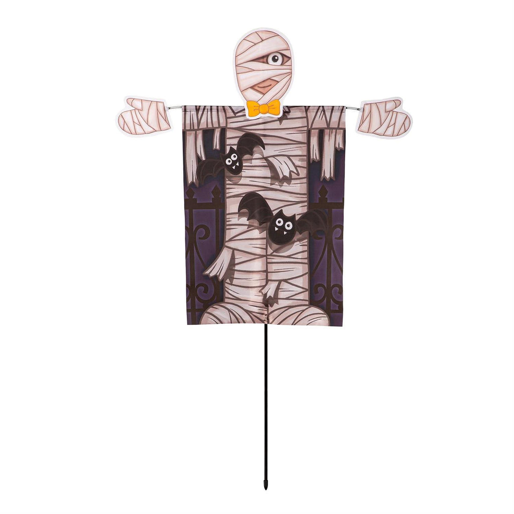 Celebrate the spooky season with this charming Halloween Friend with Bobbing Head and Hands Fabric Garden Stake. Standing at 46 inches tall, this whimsical decoration features vibrant Halloween characters with delightful details. The bobbing head and hands bring playful movement to your garden or yard, making it a perfect addition for Halloween festivities. Crafted from durable fabric, this garden stake is designed to withstand outdoor elements while adding a touch of fun to your décor. Easy to install, it’s sure to become a favorite seasonal highlight.