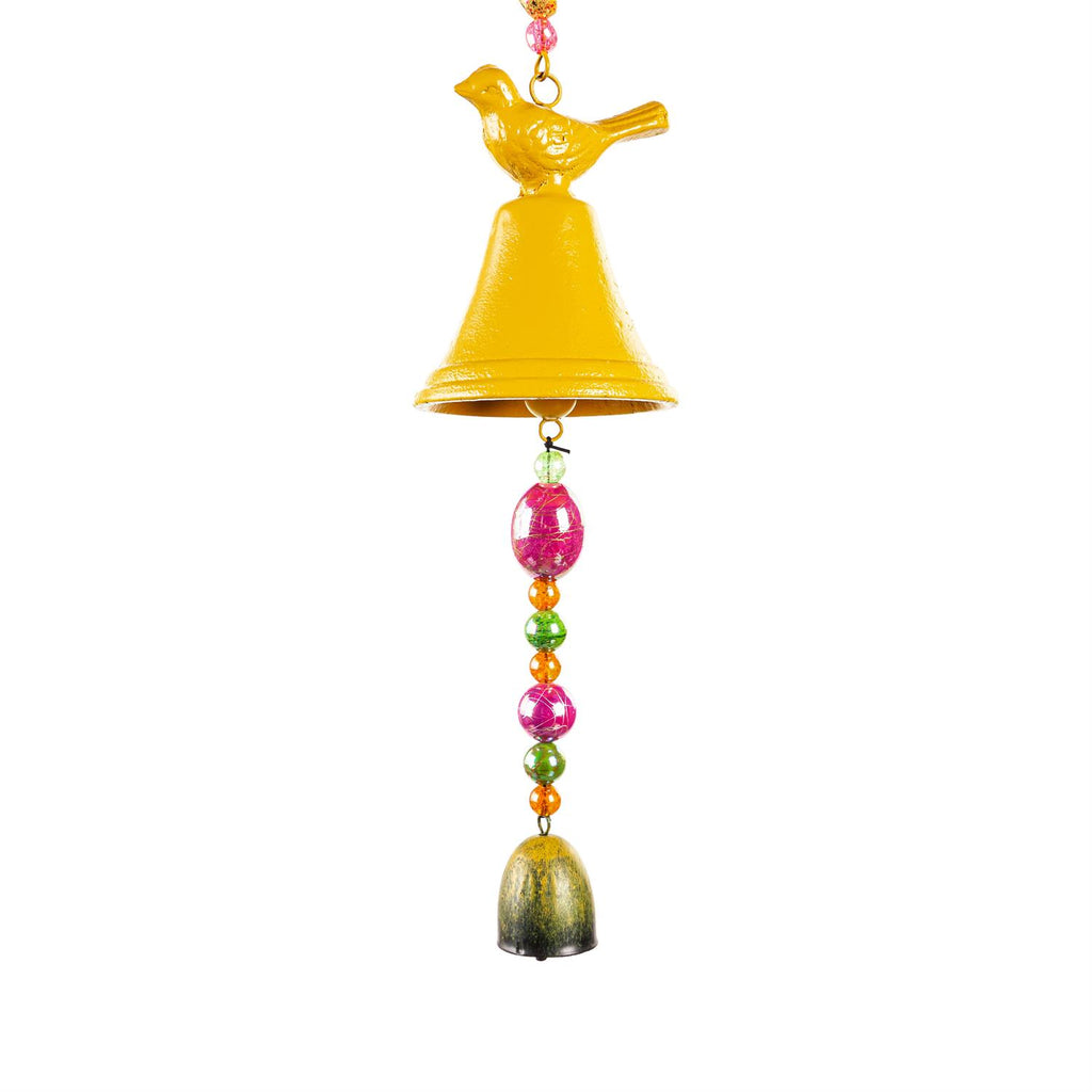 Enhance your outdoor space with these charming Cast Iron Bell with Bird Wind Chimes. Available in three assorted colors, each chime features a beautifully crafted bird perched atop a bell, creating a delightful visual and auditory experience. Measuring 19 inches in height, these wind chimes are perfect for adding a touch of whimsy to your garden or patio. The durable cast iron construction ensures longevity, while the colorful beads add a playful element. Ideal for creating a serene atmosphere, these wind chimes make a thoughtful gift for any nature lover.