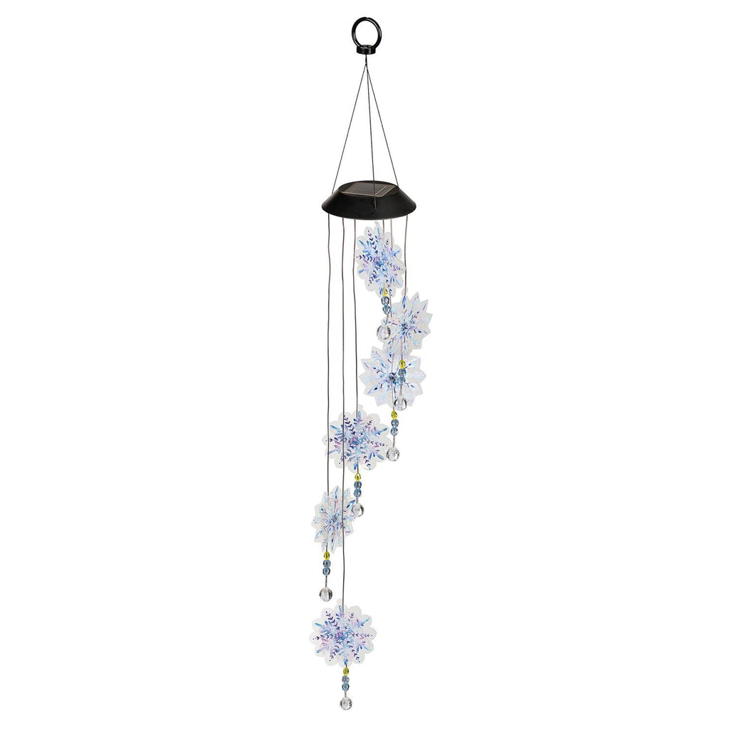 Illuminate your outdoor space with the enchanting Season to Sparkle Mobile. This solar-powered mobile features frosted snowflake designs that capture the magic of winter. Measuring 26 inches in height, it gracefully spins and glistens in the light, adding a touch of elegance to your garden or patio. The white light solar technology ensures it shines bright at night, creating a serene and festive ambiance. Perfect for seasonal decoration or year-round charm, this mobile is an effortless way to enhance your outdoor décor.