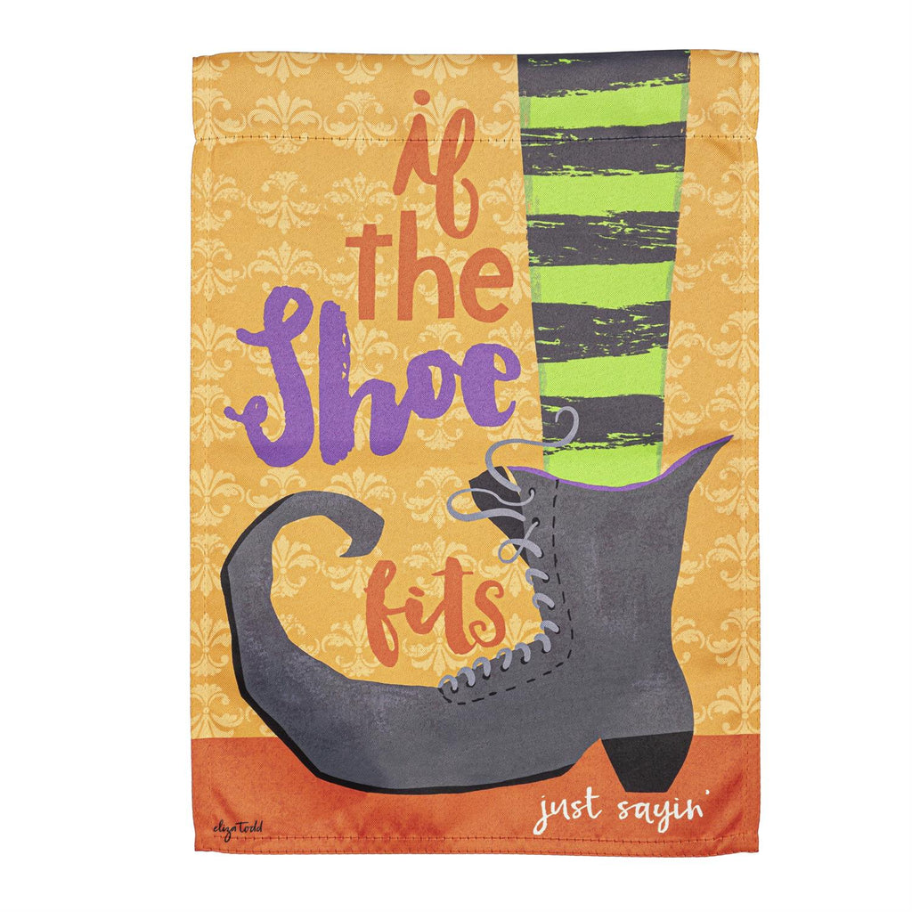 Add a touch of whimsy to your garden with the 'If the Shoe Fits' Garden Suede Flag. Perfect for the fall season, this vibrant flag features a playful design with autumnal colors and a fun, witchy theme. Made from high-quality suede, it offers durability and a soft texture that stands up to the elements. Measuring 12.5 inches by 18 inches, it’s the ideal size to make a charming statement in your outdoor space. Easy to hang and maintain, it’s a delightful way to welcome guests to your home.