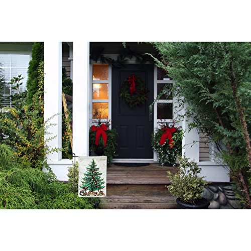 Elevate your outdoor space with the O Christmas Tree Garden Suede Flag, a festive addition designed to bring holiday cheer to your garden. Measuring 12.5 inches in length and 18 inches in height, this suede garden flag is crafted for durability and vibrant color retention. Its charming design features a classic Christmas tree surrounded by subtle, elegant patterns that capture the essence of the festive season. Perfect for welcoming guests with holiday spirit, this flag is ideal for display in front yards, patios, or garden pathways. Easy to hang and eye-catching, it's a must-have for anyone looking to enhance their outdoor décor this winter.