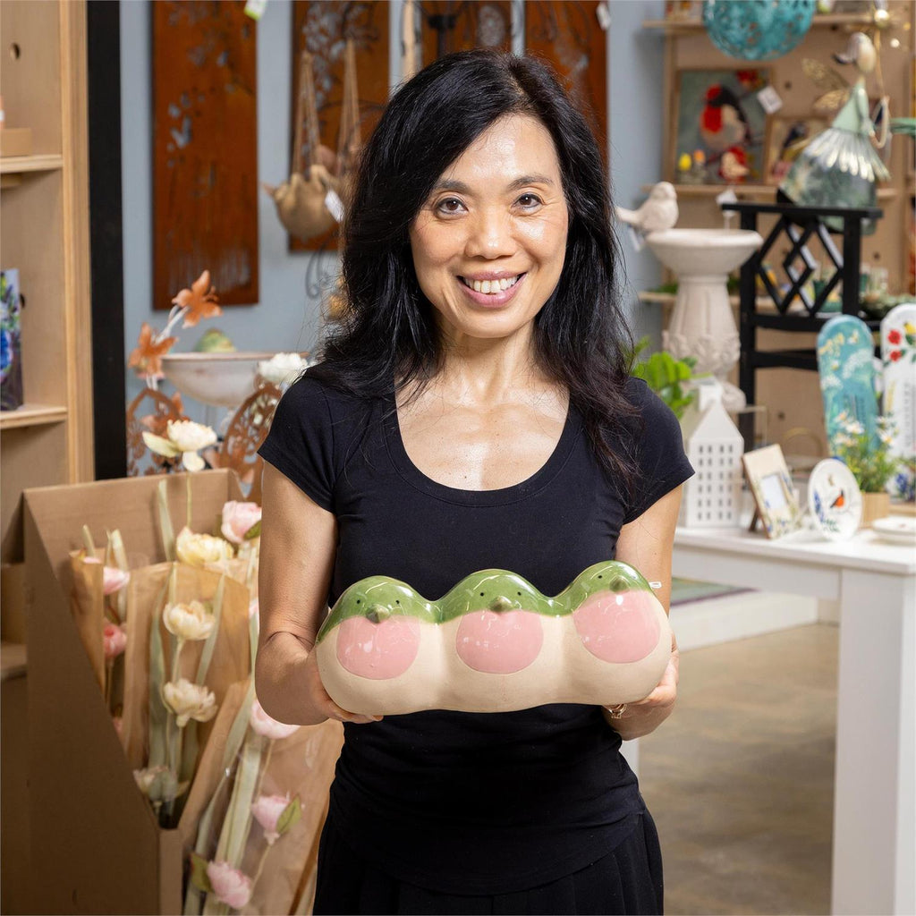 Add a touch of whimsy to your garden with this Chubby Trio of Hummingbirds Planter. Crafted with delightful detail, this planter features three charming hummingbird figures, each offering a playful and artistic flair. Measuring 6.42 inches in length, 11.34 inches in width, and 4.33 inches in height, this unique planter is perfect for showcasing small flowers or succulents. Made from durable ceramic material, it is ideal for both indoor and outdoor use. The vibrant colors and cute design make it a standout piece that will bring joy to any space.