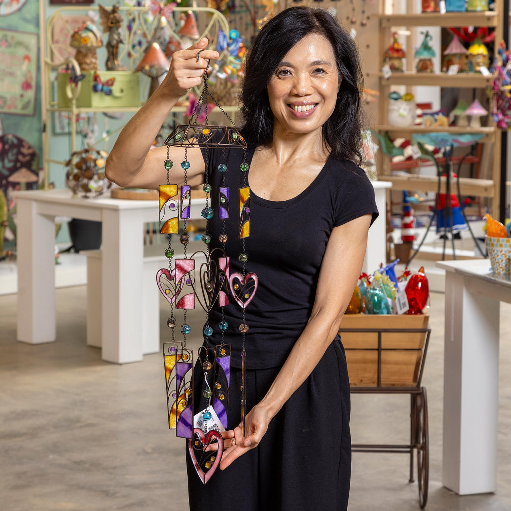 Embrace tranquility with this beautiful memorial wind chime, featuring vibrant colors and heart-shaped designs that dance in the breeze.