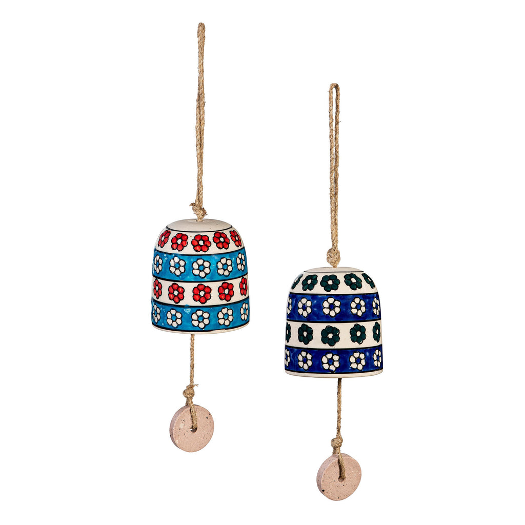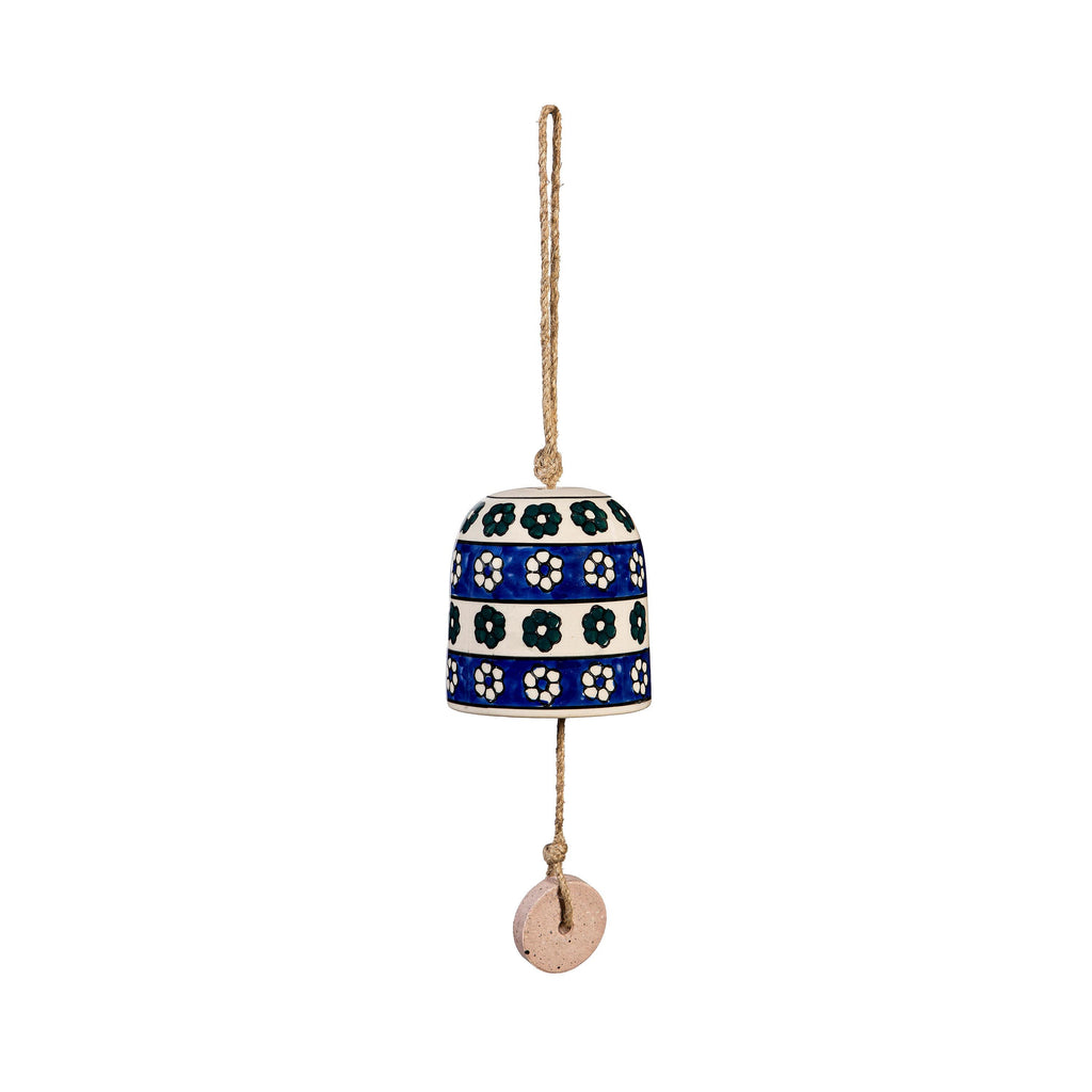 Add charm to your garden with this hand-painted ceramic bell, featuring a beautiful teal finish and delicate floral patterns.