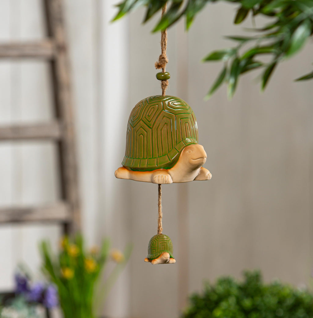 Enhance your garden with this charming Palm Beach Garden Bell featuring a turtle mommy and baby design, crafted from durable ceramic. Perfect for adding a whimsical touch to any outdoor space.