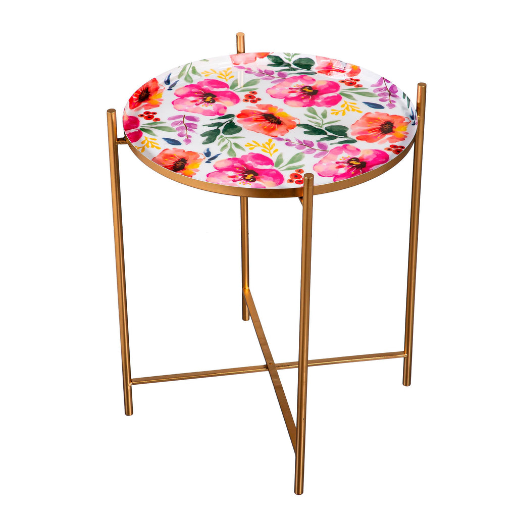 Brighten up your outdoor space with the Pastels of Nature Printed Pink Metal Side Table, featuring a vibrant floral design perfect for summer settings.