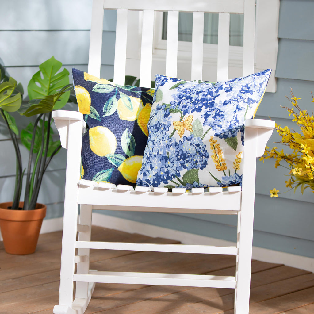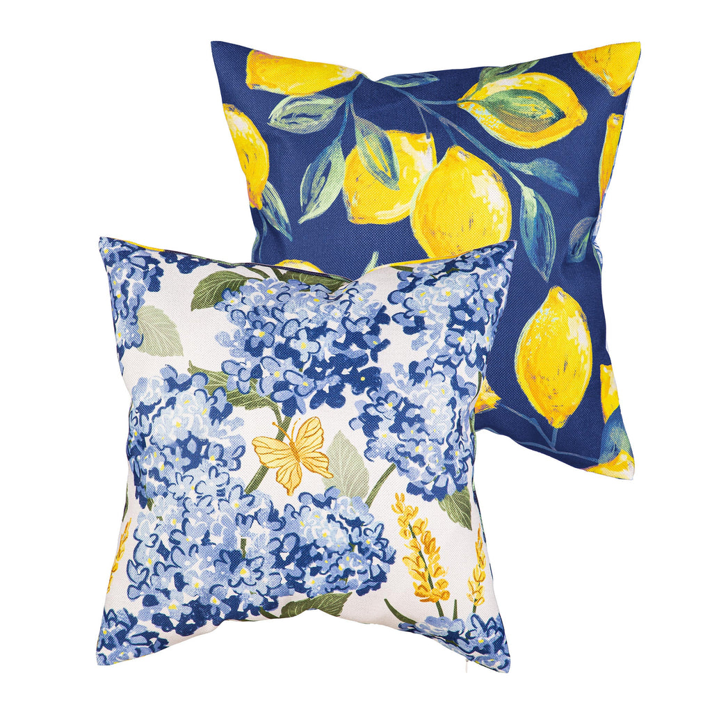 Brighten up your outdoor space with the Coastal Citrus Lemons 18" Interchangeable Pillow Cover, featuring vibrant lemon and floral designs perfect for any season.