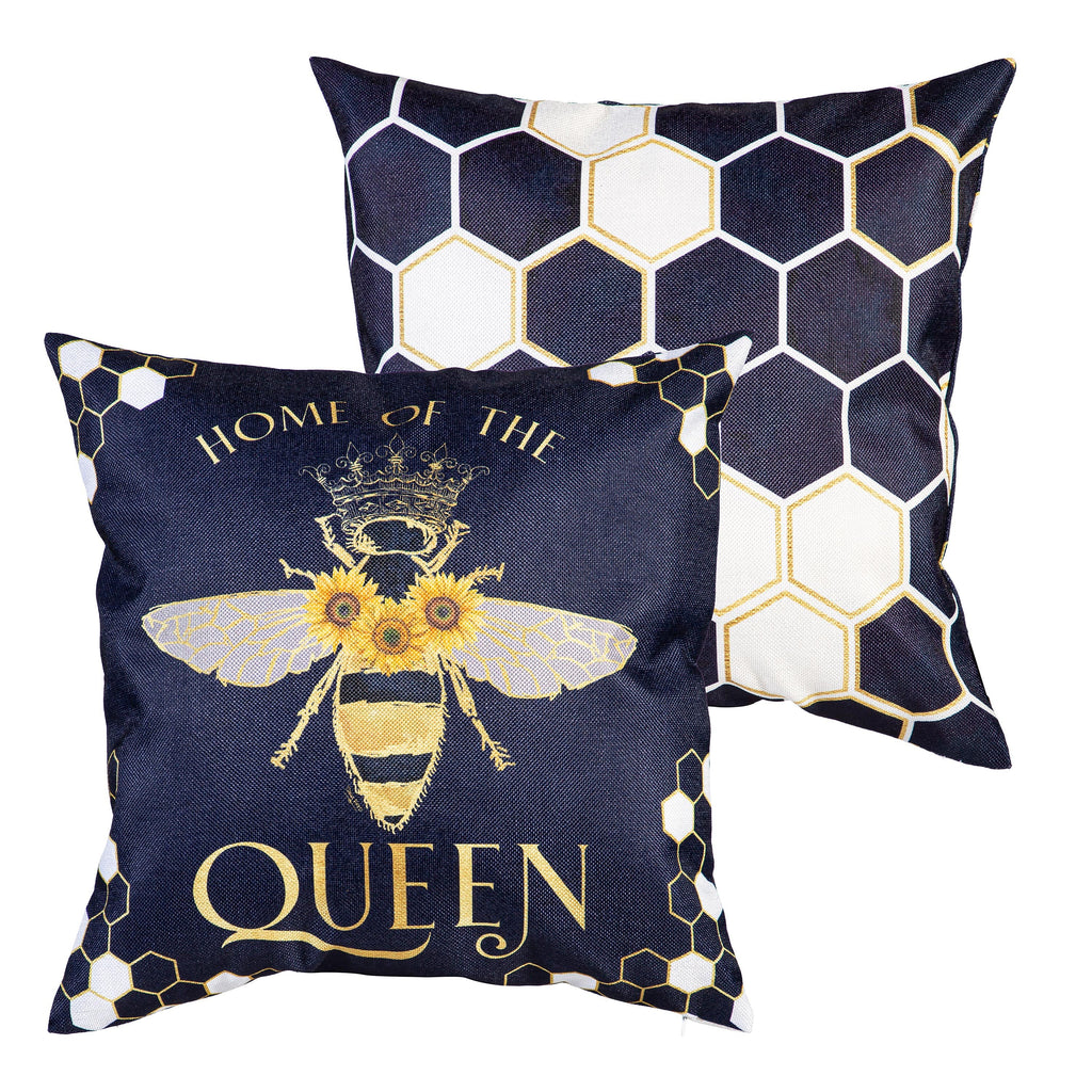 The 'Pardon the Weeds Queen Bee' interchangeable pillow cover features a vibrant bee design, perfect for adding a touch of spring elegance to your outdoor space. Its durable construction ensures it withstands the elements while providing a welcoming accent to any seating area.