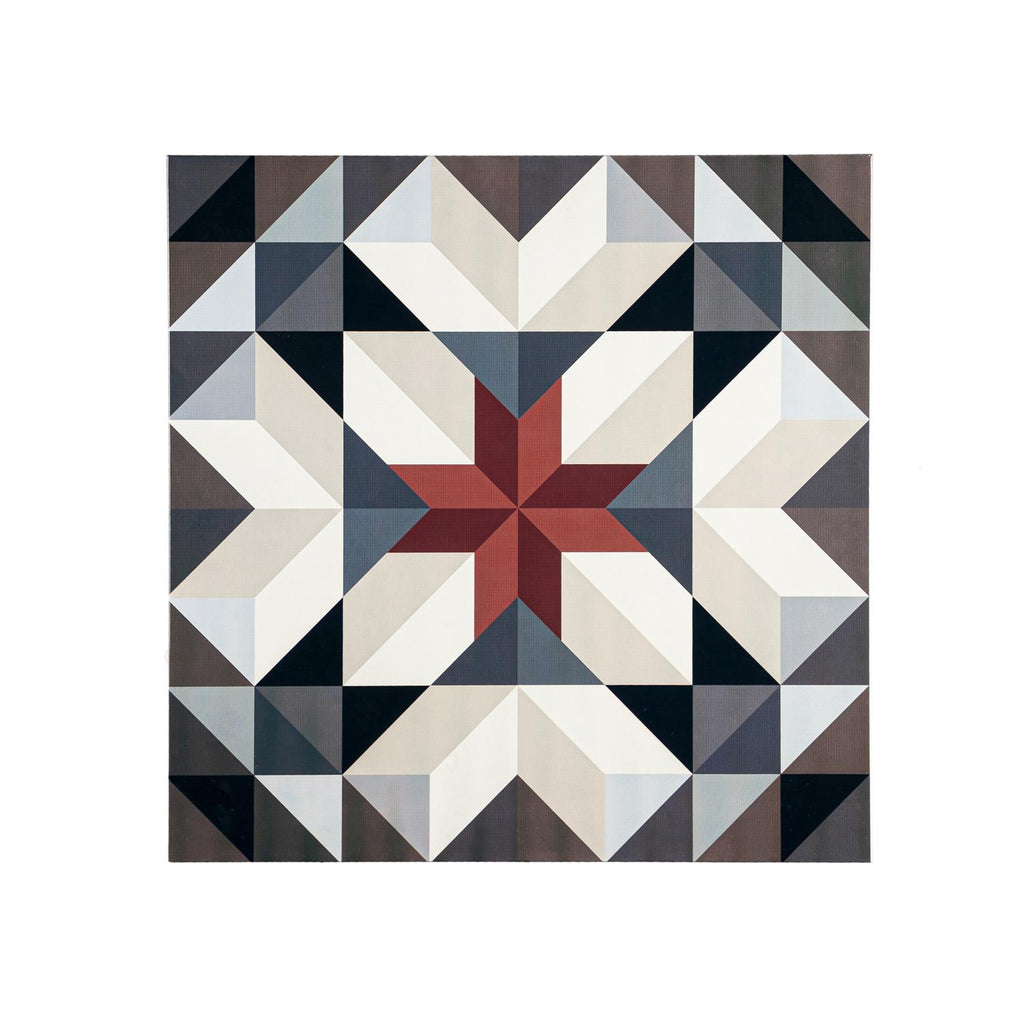 - Geometric star design adds focal point