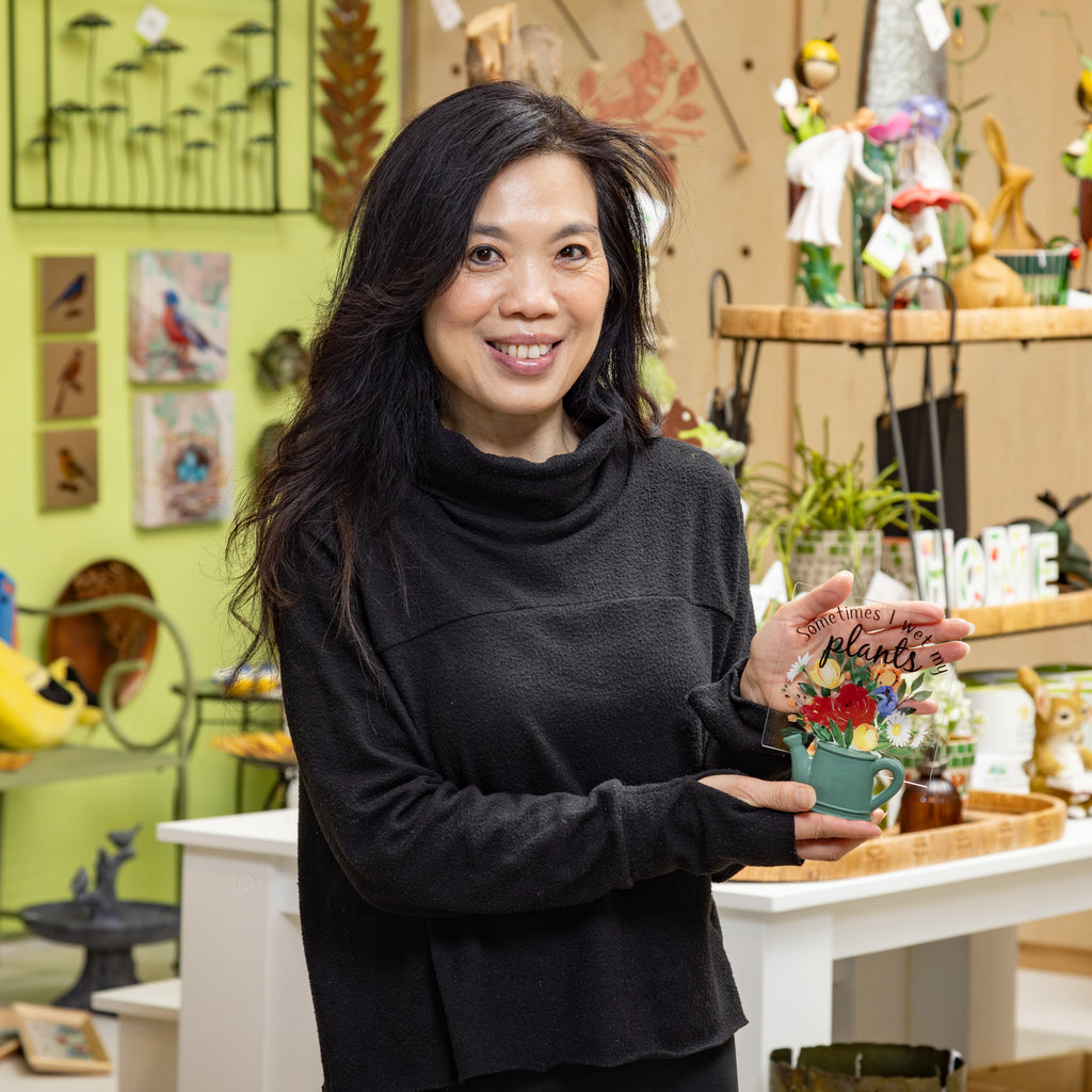 This charming floral watering can decor adds a whimsical touch to any table setting. Featuring vibrant blooms and a playful 'Sometimes I Wet My Plants' message, it brings a splash of color and humor to your home.