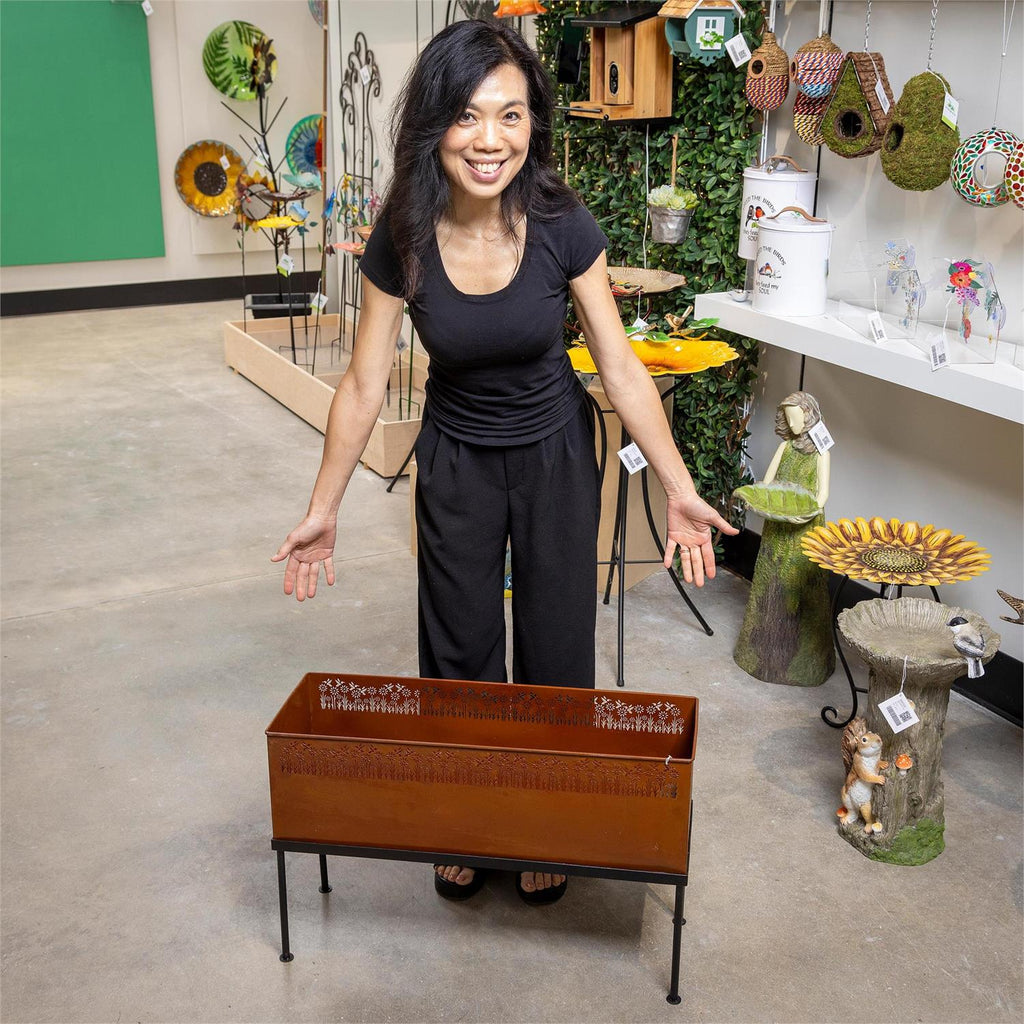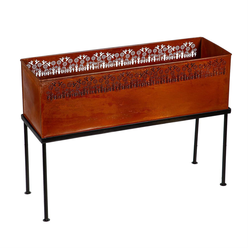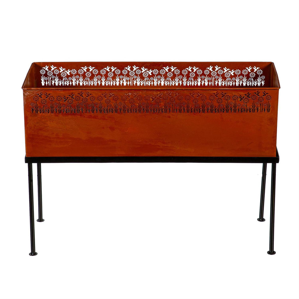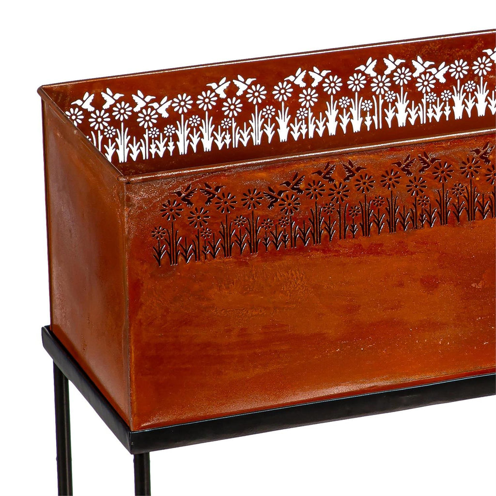 Elevate your garden or patio with this stunning Rectangular Metal Planter, featuring intricately laser-cut wildflowers and hummingbirds. With its generous dimensions of 27.5 inches in length, 9.5 inches in width, and 20.0 inches in height, this planter offers ample space for your favorite plants and flowers. Crafted from durable metal, it combines both aesthetic appeal and functionality, perfect for indoor or outdoor use. The elegant design adds a touch of nature-inspired beauty to any setting, while the sturdy construction ensures long-lasting use. Enhance your home's exterior with this charming and decorative planter.