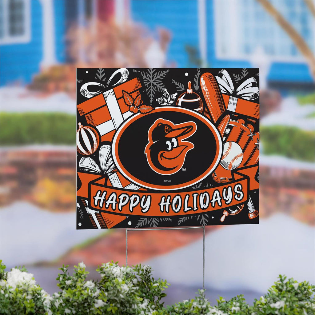 Celebrate the holiday season with this vibrant Baltimore Orioles yard sign. Perfect for fans of the team, this garden sign combines festive holiday elements with the iconic Orioles logo. Measuring 24 inches in length and 18 inches in width, it’s a great way to show your team spirit right on your lawn. The sign is crafted from durable materials to withstand winter weather while adding a cheerful touch to your outdoor décor. Easy to install, it makes a striking statement for every Orioles supporter during the festive season.