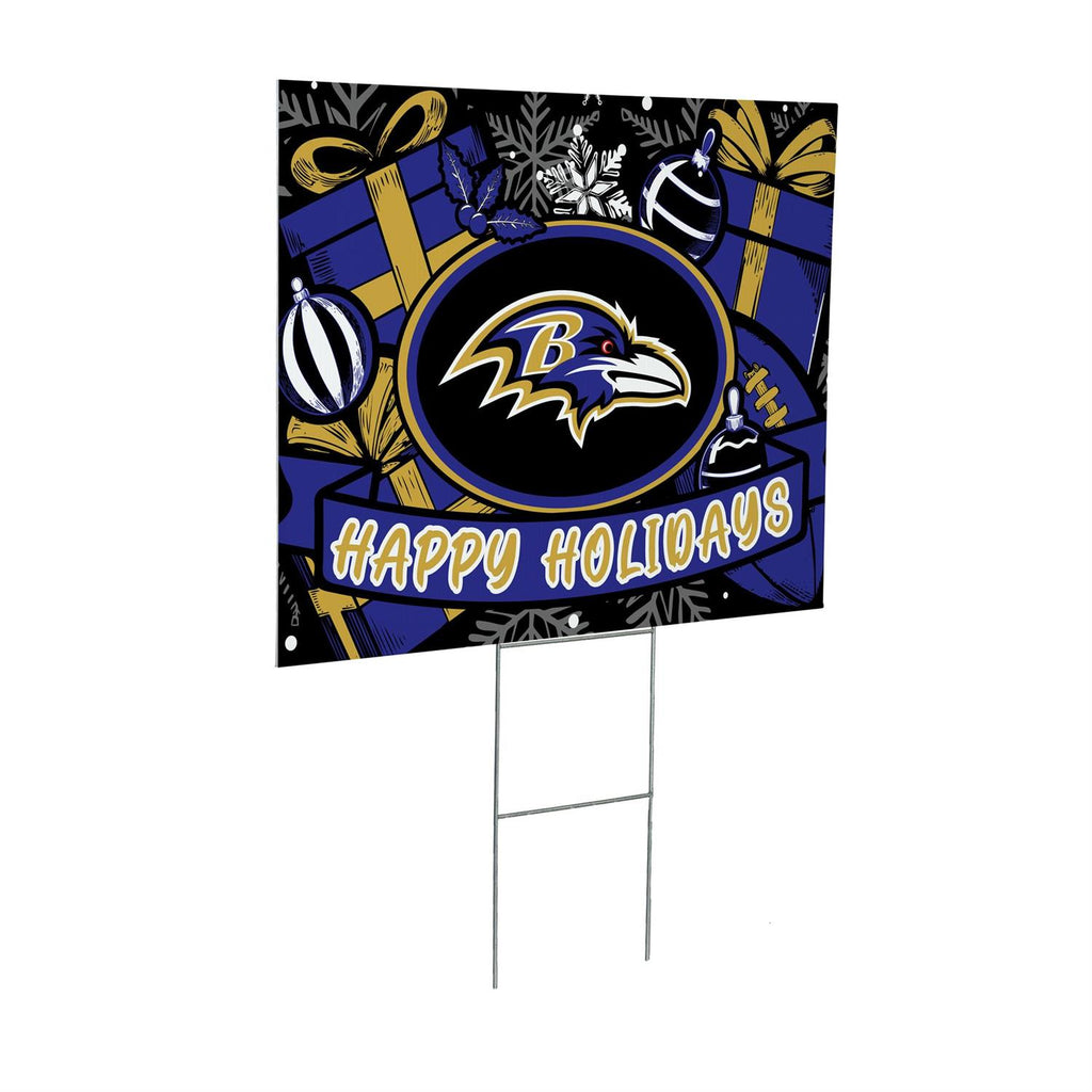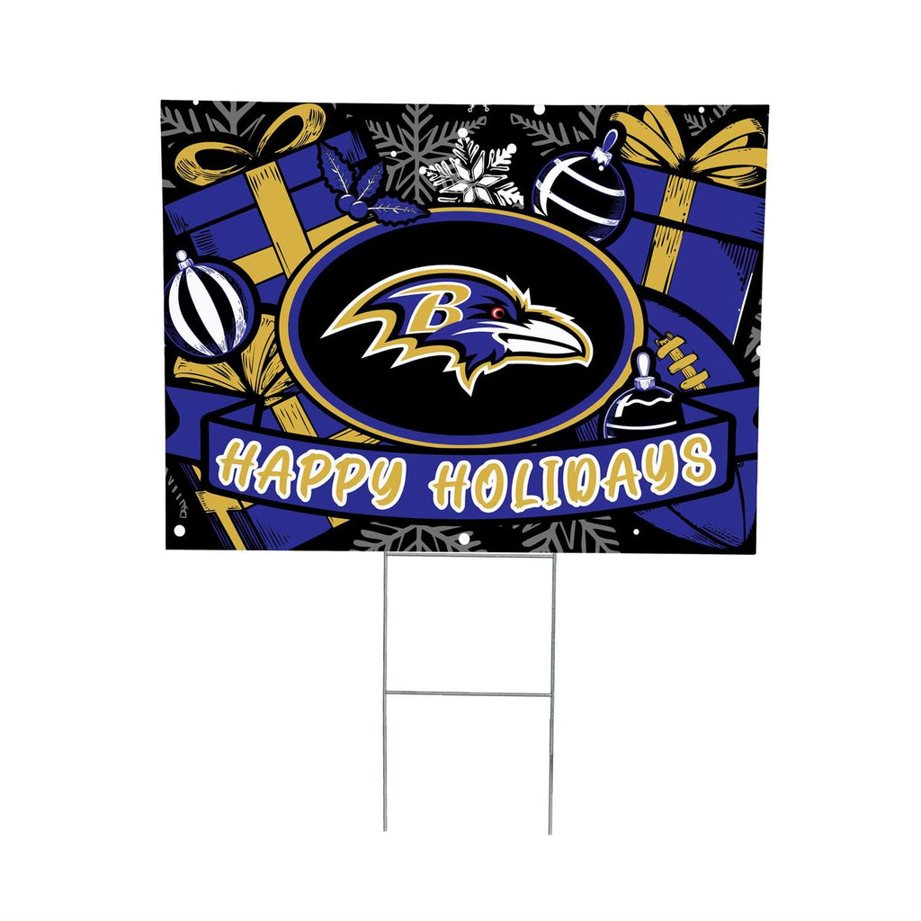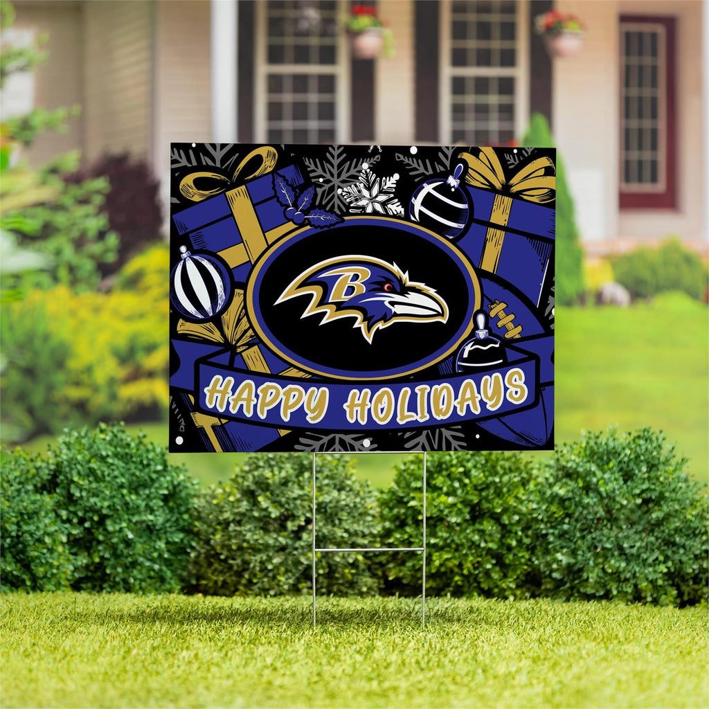 Show your team spirit this holiday season with the Baltimore Ravens Yard Sign. Perfect for any fan, this garden sign combines festive holiday elements with your favorite team's logo for a spirited display. Measuring 24 inches in length and 18 inches in width, it's designed to make a bold statement in your yard. Crafted to withstand outdoor conditions, this sign is ideal for adding a touch of team pride to your holiday decorations. Whether it's for a game day party or simply to celebrate the season, this sign is a must-have for any Ravens fan.