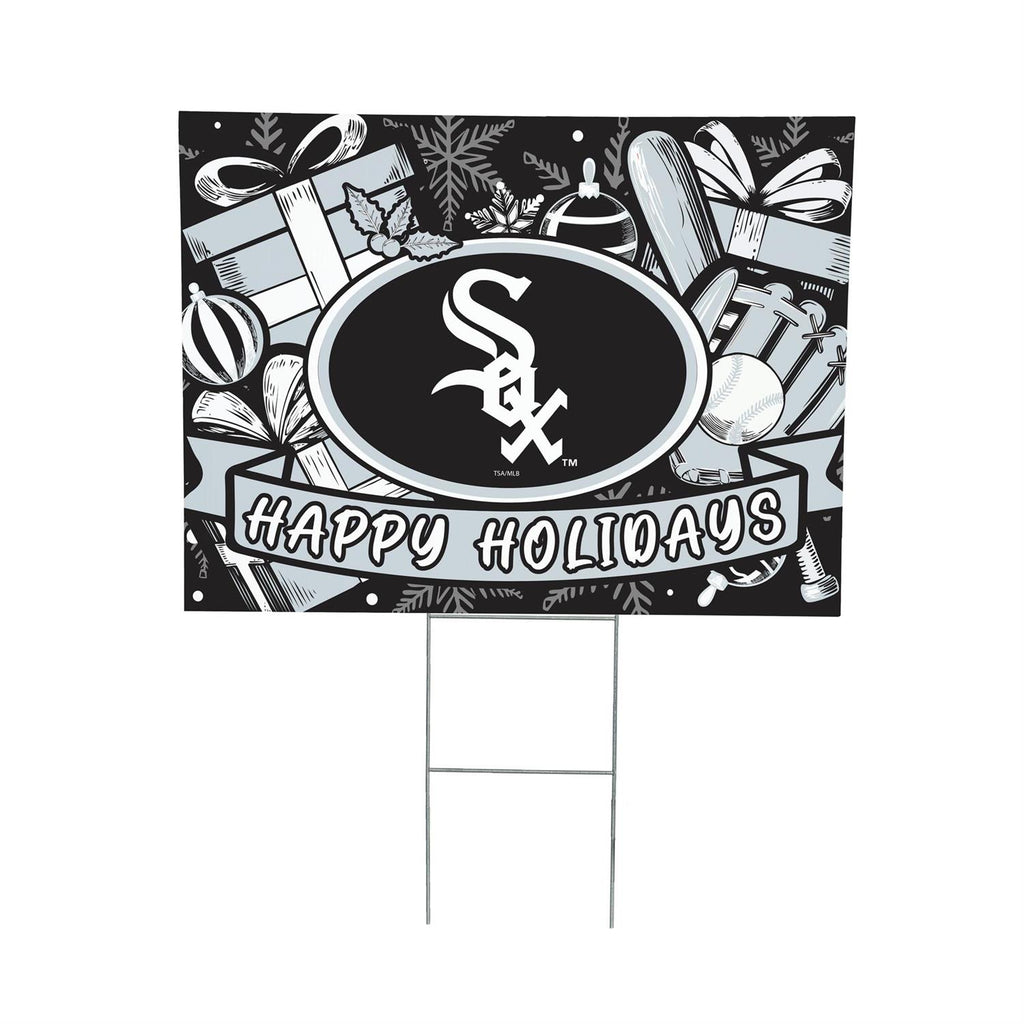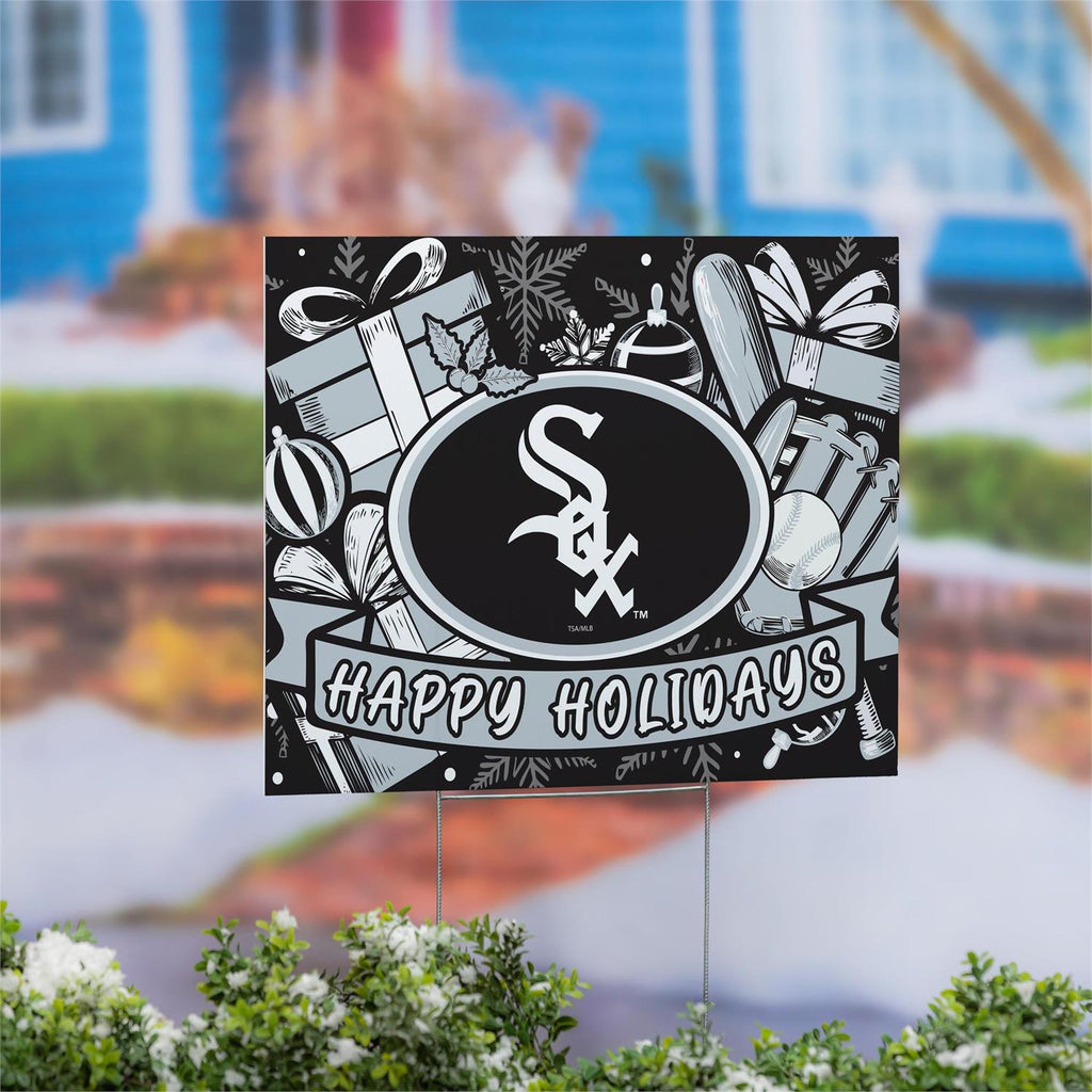 Celebrate the festive season while showing your team spirit with this Chicago White Sox yard sign. Perfect for any fan, this garden sign features a holiday-themed design complete with sports elements and seasonal decorations. Measuring 24 inches by 18 inches, it's crafted to withstand outdoor conditions, making it an ideal addition to your holiday décor. The sleek design and vibrant graphics are sure to stand out, welcoming guests with a cheerful holiday message and your favorite team's logo.