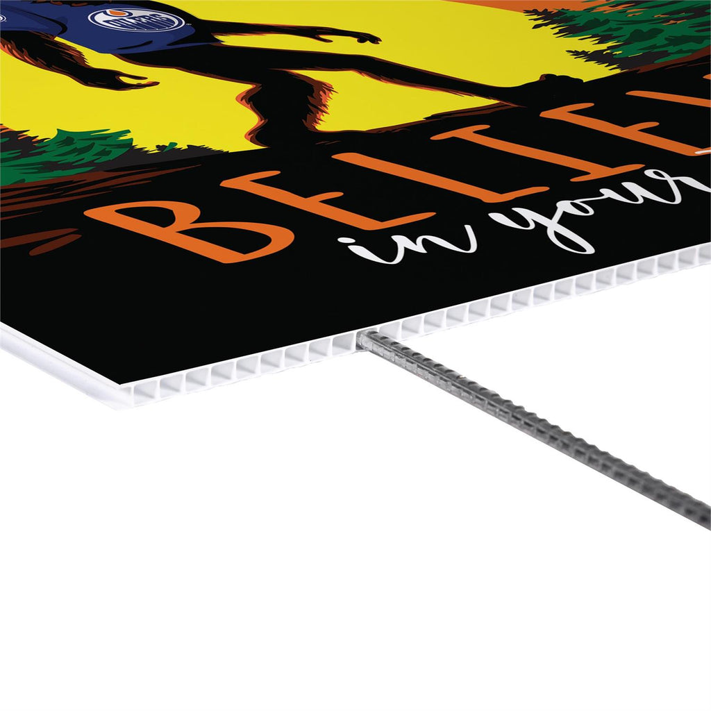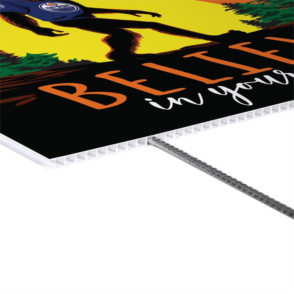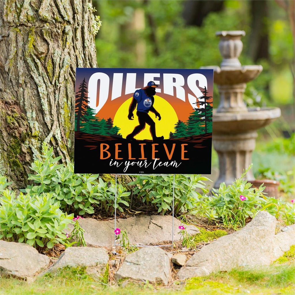 Show your support for the Edmonton Oilers with this eye-catching yard sign featuring a playful Bigfoot design. Perfect for any fan, this sign is made from durable materials to withstand outdoor conditions. Its vibrant colors and bold graphics make it a standout addition to your garden or front yard, ensuring everyone knows where your loyalties lie. Measuring 24 by 18 inches, this sign is easy to install and remove, making it a convenient choice for both game days and everyday display.