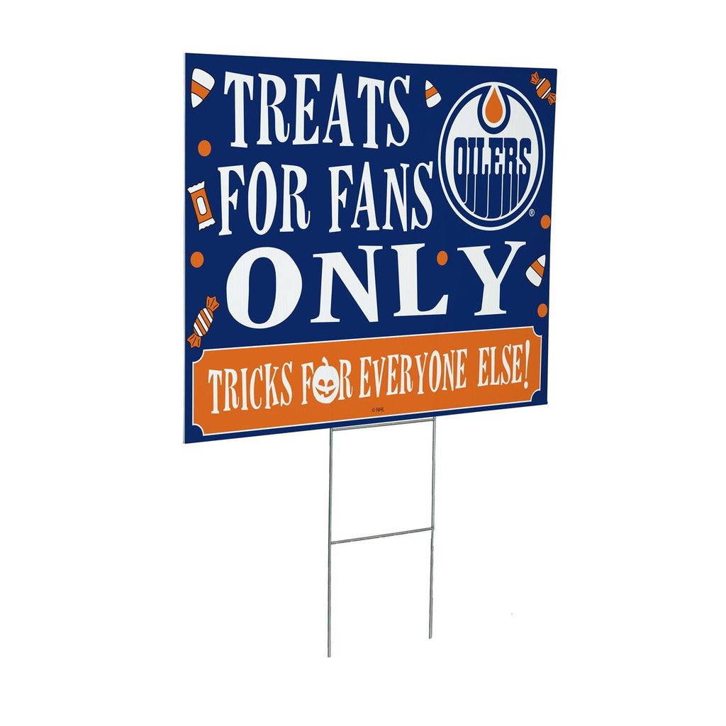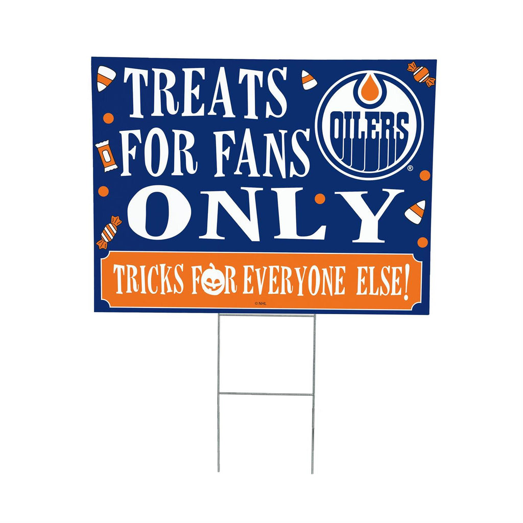 Show your team spirit this Halloween with the Edmonton Oilers Yard Sign, perfect for fans who want to add a fun, festive touch to their garden. Featuring bold team colors and playful graphics, this sign is an eye-catching way to welcome trick-or-treaters who share your love for the Oilers. Made from durable materials, it withstands the elements and maintains its vibrant appearance throughout the season. Measuring 24 inches by 18 inches, it's the ideal size for creating a noticeable yet tasteful display in your yard.