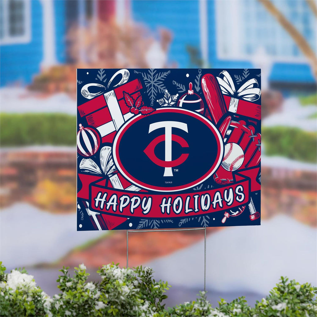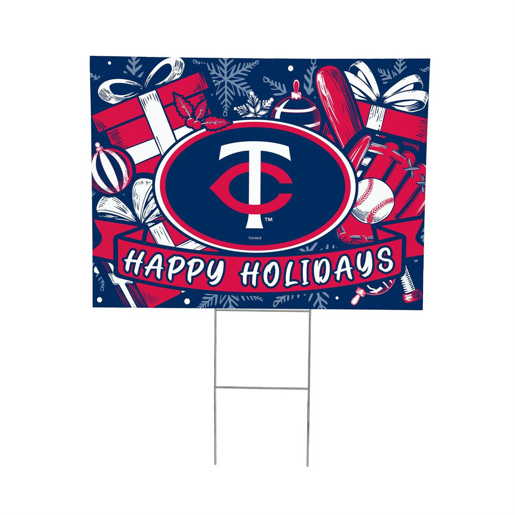 Celebrate the holiday season with a touch of team spirit using this Minnesota Twins Yard Sign. Perfect for fans, this vibrant sign features festive holiday elements along with the iconic team logo, making it an ideal addition to your garden or front yard. Made from durable materials, it withstands winter weather while spreading cheer to neighbors and passersby. Its bold design in team colors is sure to stand out, making it a must-have for any Twins supporter. Easy to set up, this sign adds a spirited touch to your holiday décor.