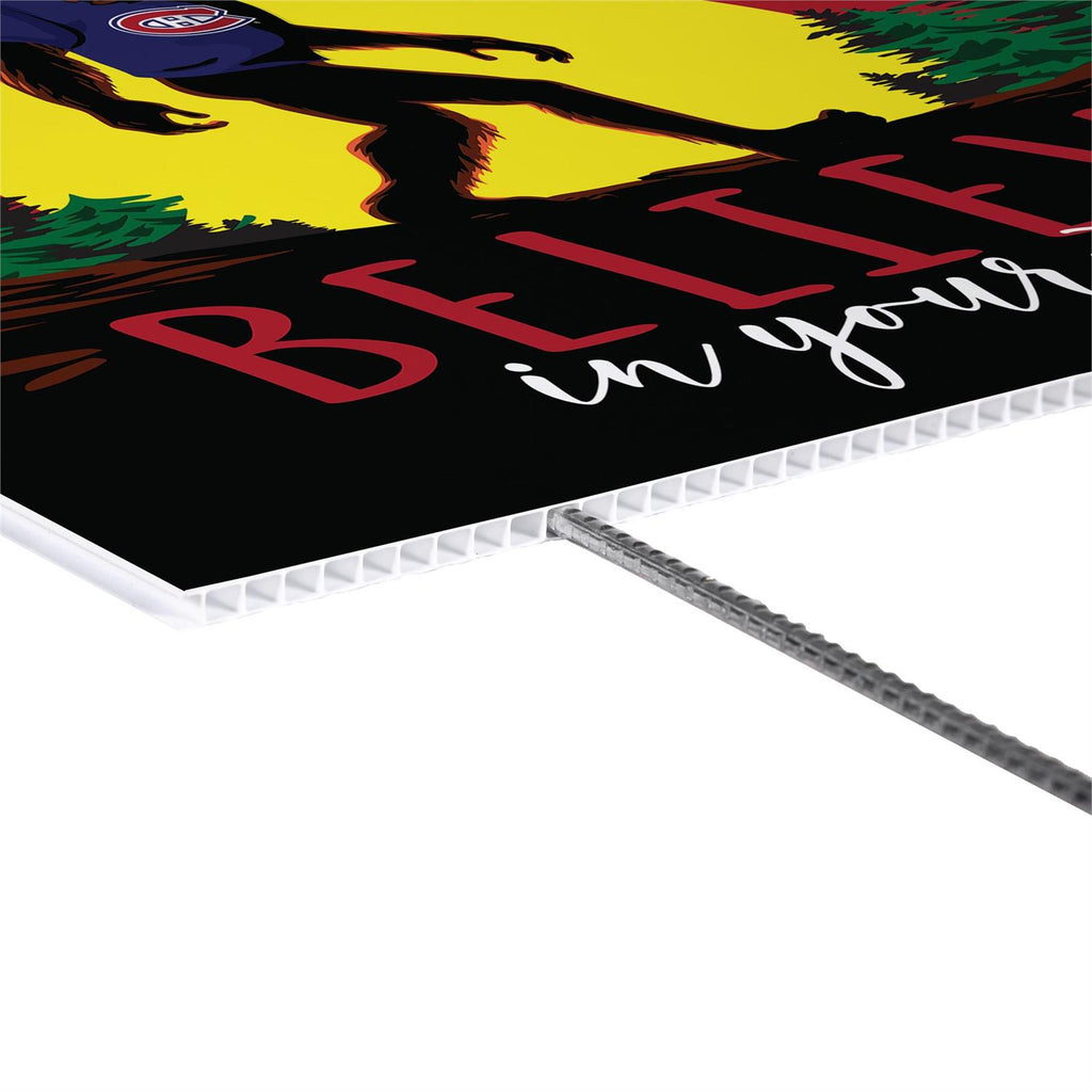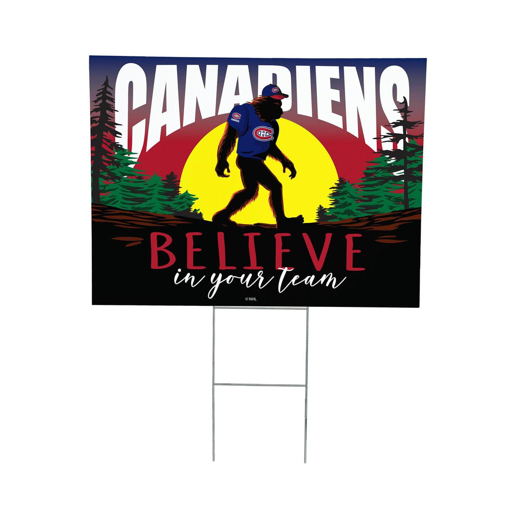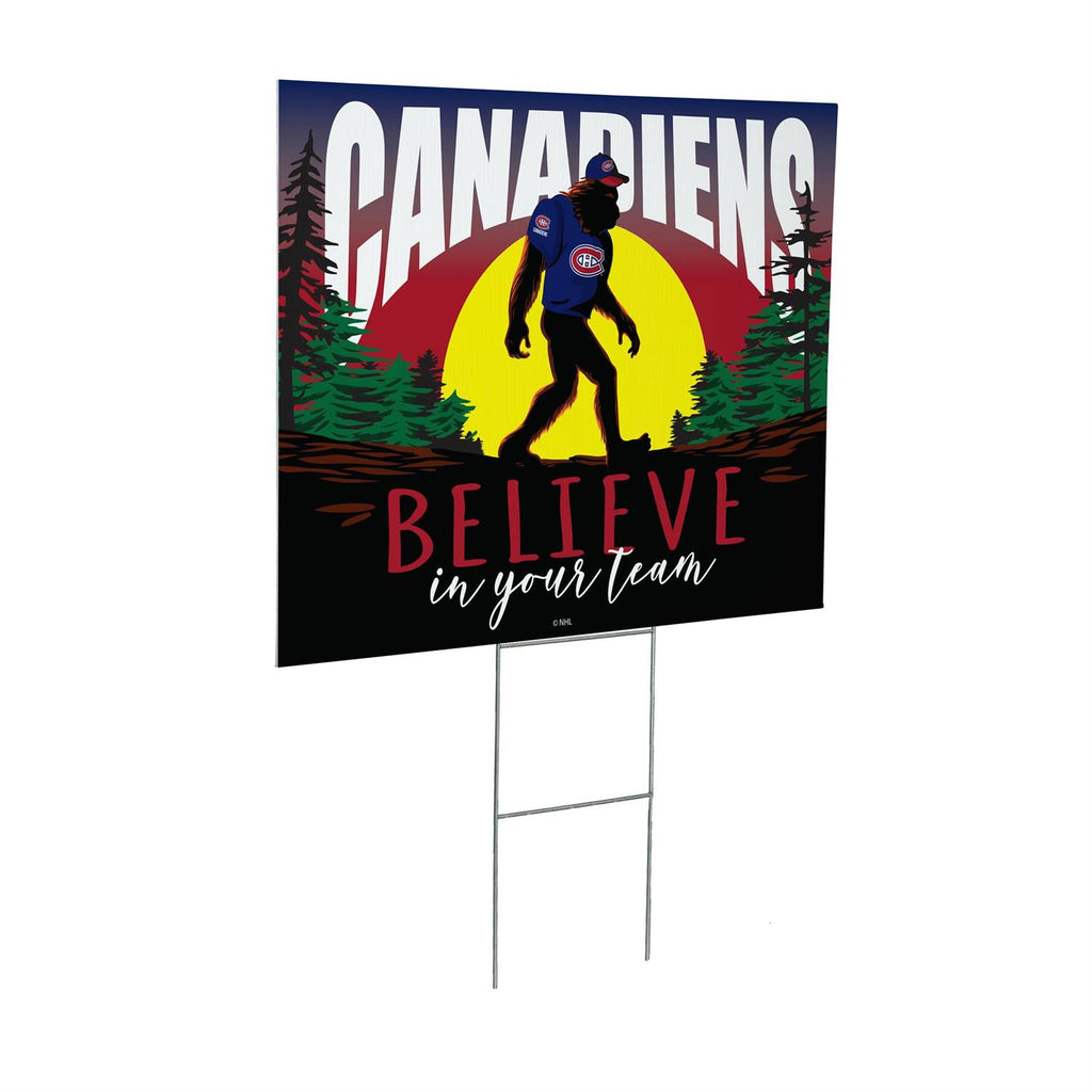 Show off your team spirit with the Montreal Canadiens Yard Sign featuring Bigfoot! Perfect for fans who love a touch of whimsy in their garden décor, this vibrant sign measures 24 inches by 18 inches. Crafted from durable materials, it's designed to withstand outdoor elements while making a bold statement. The eye-catching design features a sunset backdrop and a playful Bigfoot motif, encouraging you to "Believe in your team." Whether placed in your front yard or garden, this sign is sure to spark conversations and support your favorite team in style.