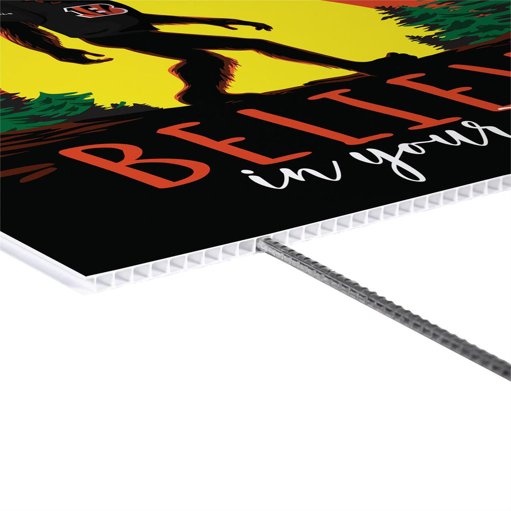 Show your support for the New England Patriots with this eye-catching yard sign featuring a fun Bigfoot design. Perfect for game days or year-round display, this sign adds a touch of whimsy to your garden or lawn. Made from durable materials, it withstands the elements while maintaining vibrant colors. The sign measures 24 inches in height and 18 inches in width, making it a noticeable statement piece for any fan. Easy to install, it's the perfect addition to your outdoor décor.