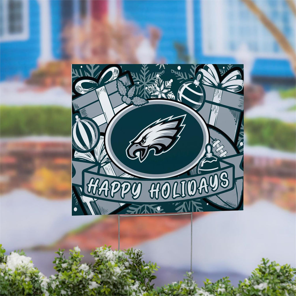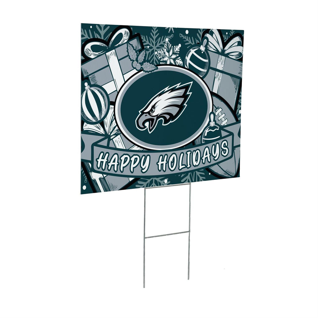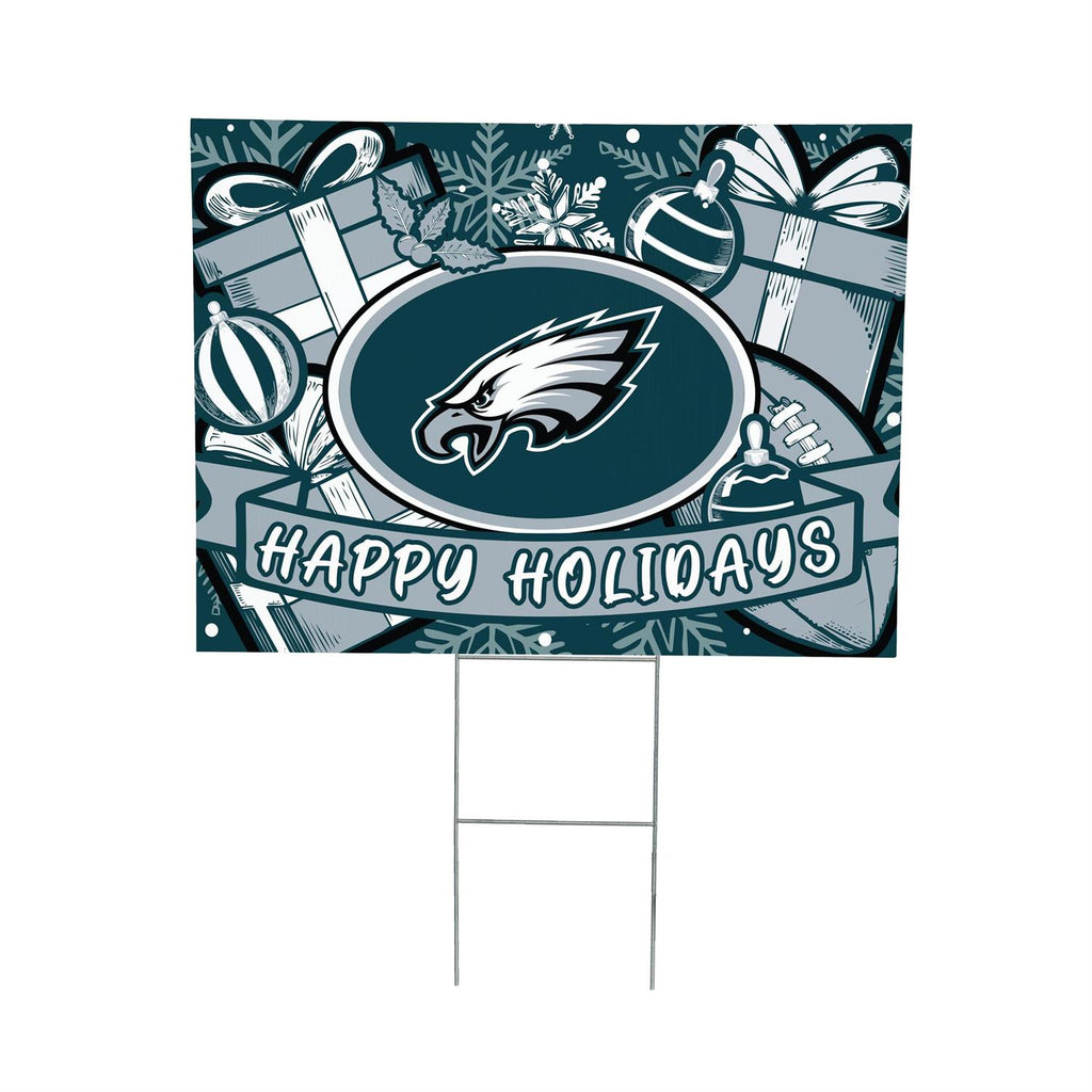 Celebrate the holiday season and show off your team pride with the Philadelphia Eagles Yard Sign. This durable and vibrant sign measures 24.0 inches by 18.0 inches, making it a standout addition to your garden or front yard. Featuring festive holiday designs with the iconic Eagles logo, it's perfect for adding a touch of team spirit to your outdoor decor. Easy to install and weather-resistant, this sign ensures your support for the Eagles shines bright all season long.