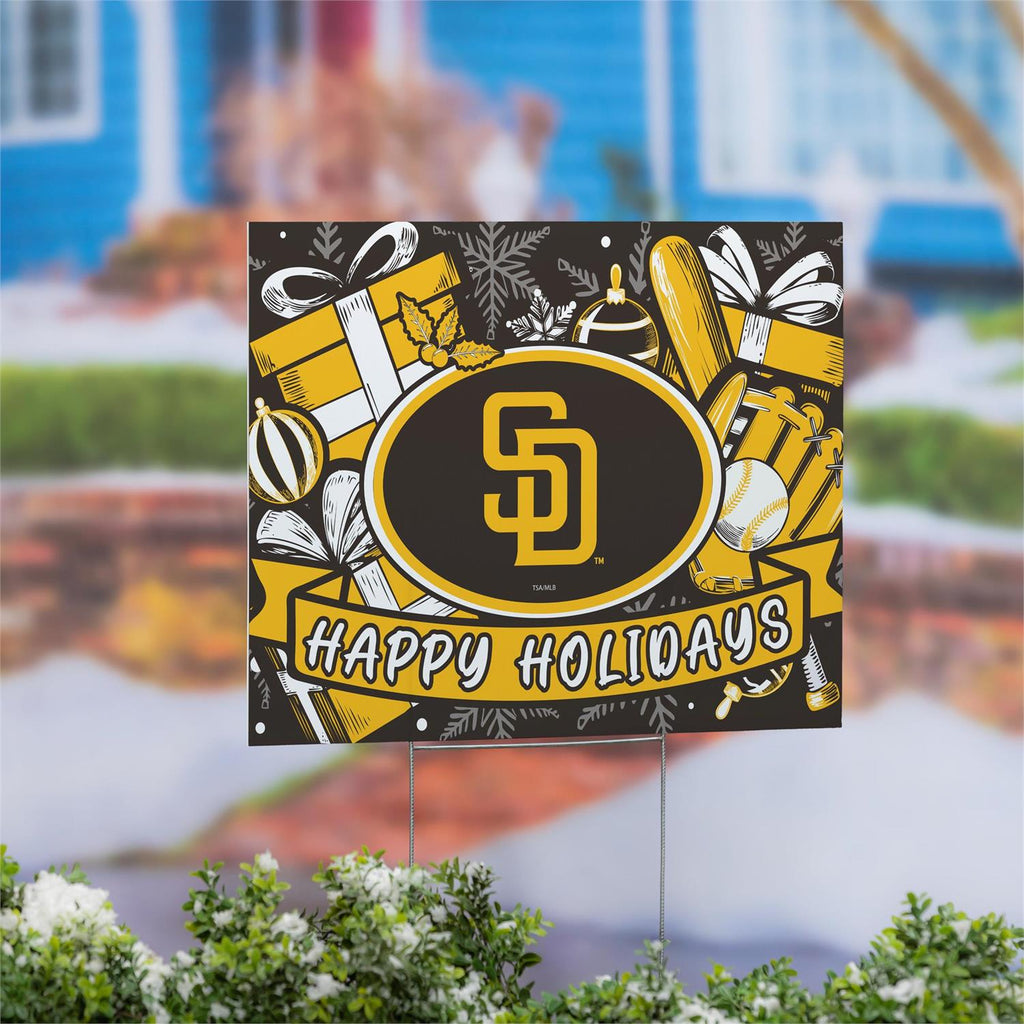 Celebrate the holiday season with team spirit using the San Diego Padres Yard Sign. Perfect for fans looking to add a festive touch to their garden or front yard, this sign combines holiday cheer with sports enthusiasm. Made from durable materials, it withstands various weather conditions, ensuring your yard stays vibrant throughout the season. The eye-catching design features bold colors and iconic team graphics, making it a standout piece for any Padres supporter. With easy setup and storage, this sign is a convenient way to showcase your holiday and team pride.