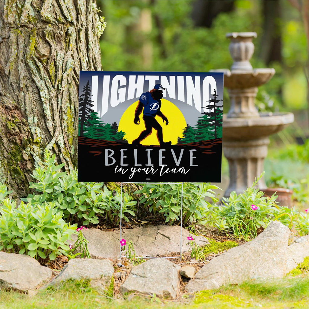 Show off your team spirit with this unique Tampa Bay Lightning Yard Sign featuring Bigfoot. Perfect for any fan, this eye-catching garden sign measures 24 inches by 18 inches, making it a bold statement piece for your yard. Crafted from durable materials, it’s designed to withstand the elements and keep your support visible all season long. The vibrant design includes a silhouette of Bigfoot wearing a team jersey against a striking sunset backdrop, encouraging everyone to 'Believe in your team.' Easy to install, this sign is a great addition to any garden or lawn.