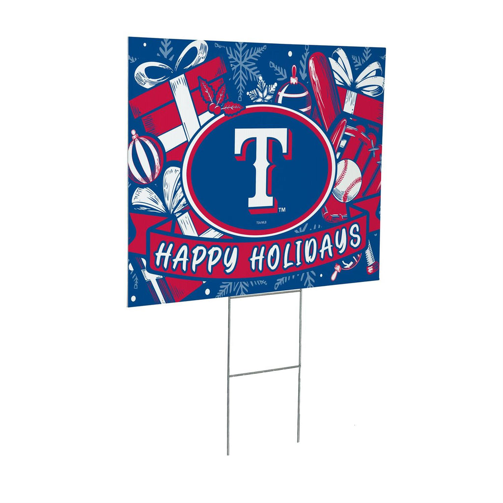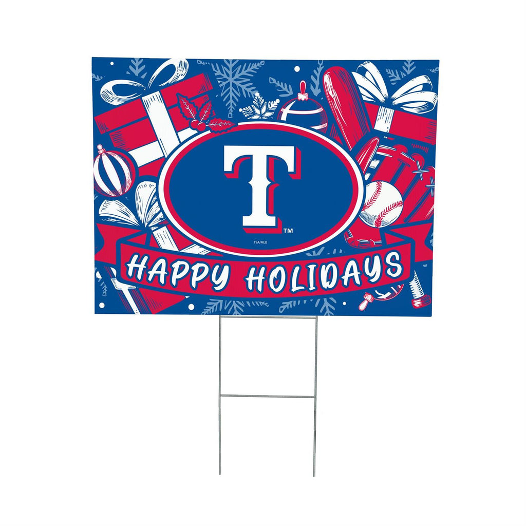 Celebrate the holiday season with this festive Texas Rangers yard sign. Measuring 24 inches in length and 18 inches in width, this vibrant sign is a perfect way to show off your team spirit. Made for outdoor use, it features a cheerful design with holiday-themed graphics in the iconic team colors. Durable and weather-resistant, this sign is easy to install and adds a touch of team pride to your garden or lawn. Whether you're hosting a holiday party or just want to spread some cheer, this sign is an ideal addition to your seasonal décor.