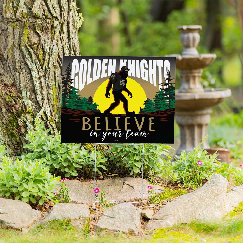 Show off your team spirit with the Vegas Golden Knights Yard Sign featuring Bigfoot. This eye-catching sign is perfect for any fan who wants to add a touch of whimsy to their garden or yard. Measuring 24.0 inches in length and 18.0 inches in width, this durable sign is designed to withstand the elements while proudly displaying your allegiance. The vibrant graphics showcase Bigfoot sporting a team jersey, set against a scenic forest backdrop with a bold "Believe in your team" message. Easy to install, it's a fun and unique way to support your favorite team.