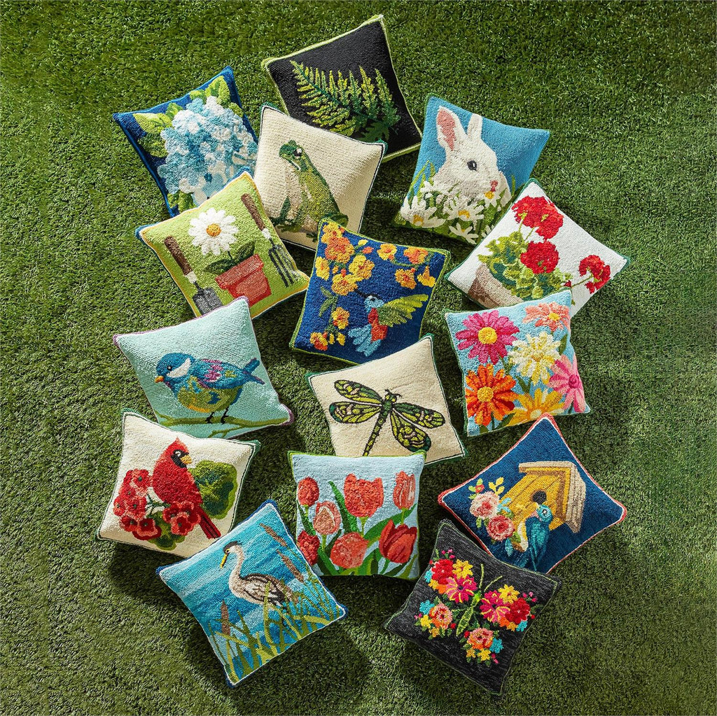 Bring a touch of spring to your space with this Pink Tulips Indoor/Outdoor Hooked Pillow. Measuring 18"x18", this vibrant pillow is perfect for adding a splash of color to your décor. The intricate hooked design features a lively pattern of pink tulips against a serene blue background, crafted to enhance both indoor and outdoor settings. Made with durable materials, this pillow is not only stylish but also easy to maintain, ensuring it remains a standout piece on your patio or in your living room.