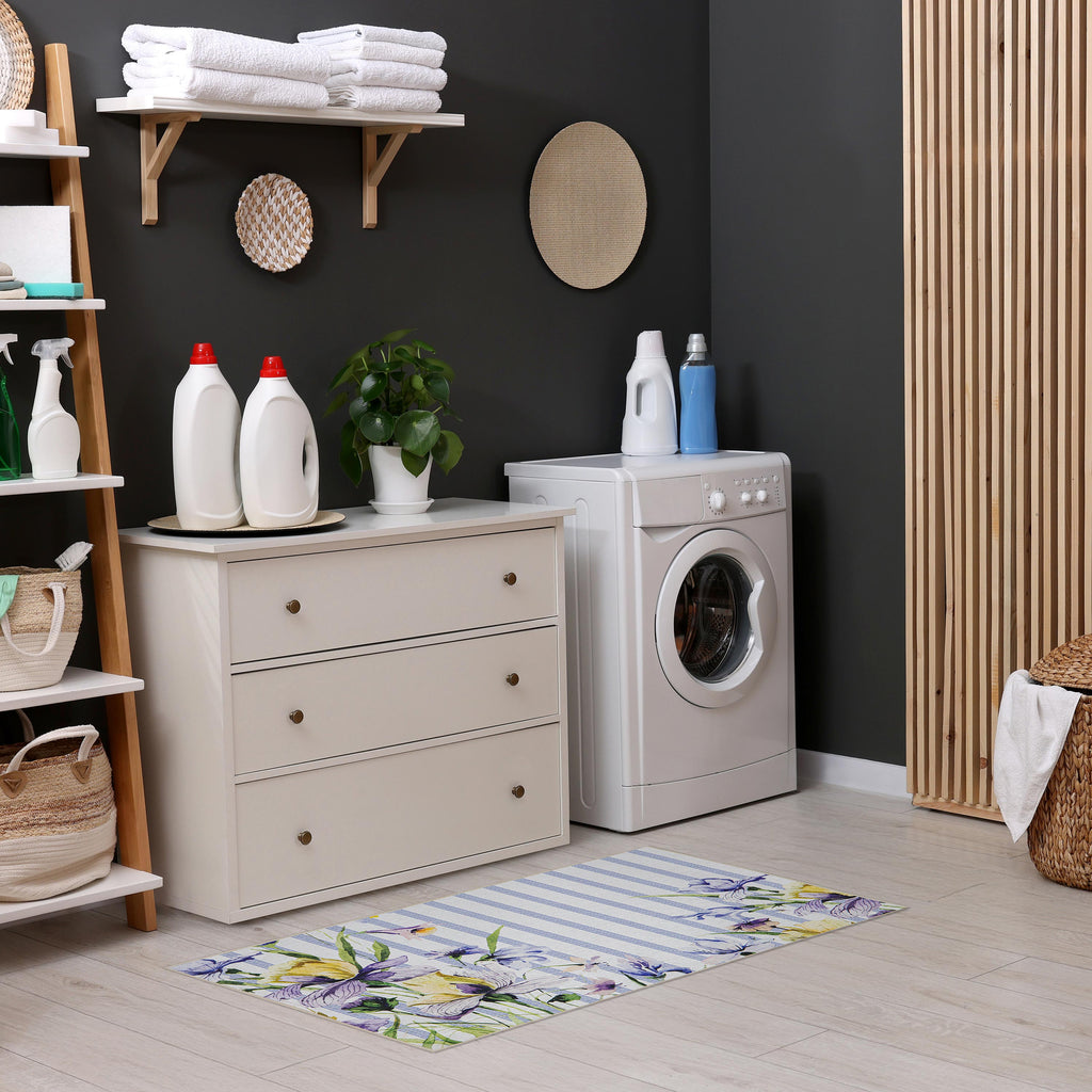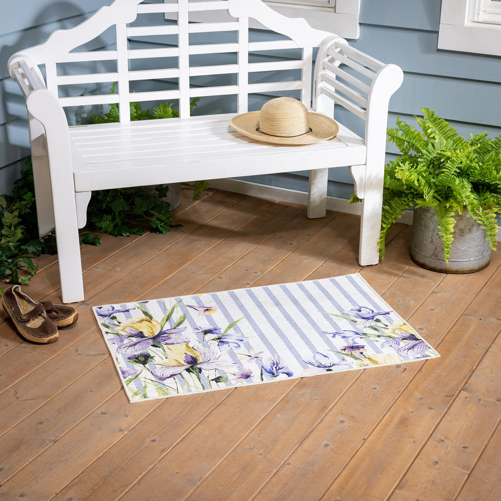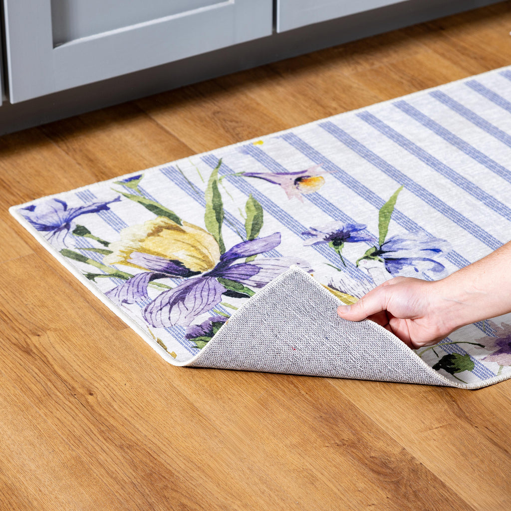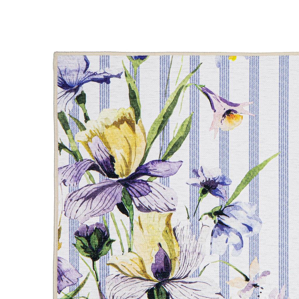 The Golden Lilac Washable Accent Rug offers a vibrant floral design with a soft lilac and gold color palette, perfect for adding a touch of summer elegance to your outdoor space. This rug is easily washable, making maintenance a breeze.