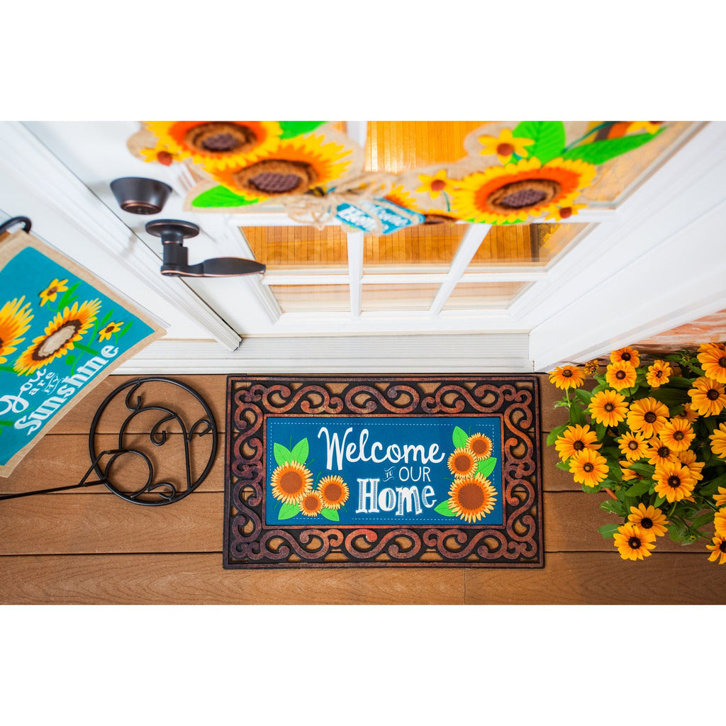 Brighten up your entryway with the 'You Are My Sunshine Sassafras Switch Mat'. Featuring vibrant sunflowers and a welcoming message, this mat is perfect for adding a touch of warmth to your home. Measuring 22 inches in length and 10 inches in width, it's designed to fit perfectly in standard Sassafras bases. The durable construction ensures it stands up to daily wear, while the colorful design brings a cheerful vibe to any doorstep. Ideal for spring and summer, this mat is a delightful way to greet your guests.