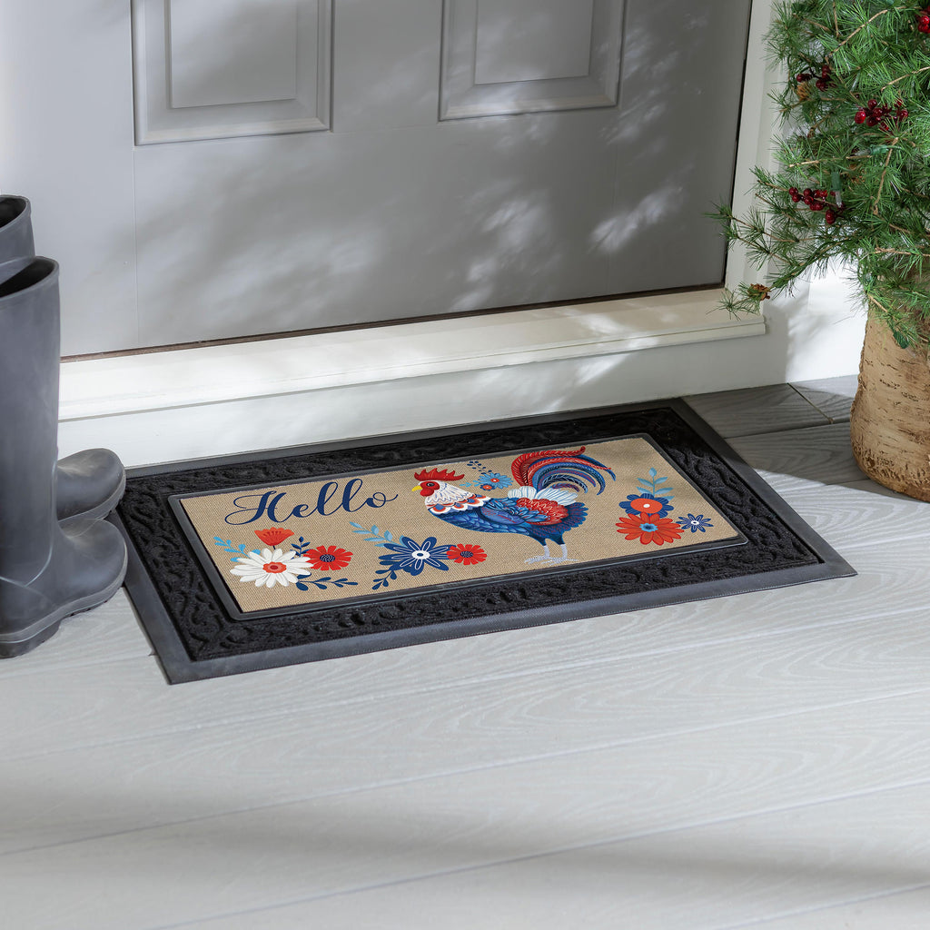 Give guests a warm welcome with this Sassafras Switch Mat. It features a beautiful design that’s sure to make friends and family smile. Crafted from heat-sublimated polyester with a rubber backing, this versatile mat is designed to fit perfectly within Evergreen's switch doormat bases. The mildew resistant mat is ideal for indoor or outdoor use and features a skid-resistant backing to help keep it in place. This welcoming mat will freshen up your stoop season after season while ensuring your home stays debris-free. For stains, simply spot clean with soap and warm water.