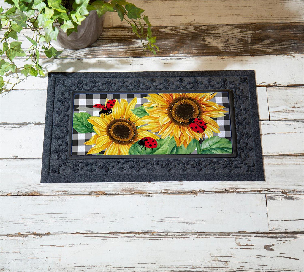 Give guests a warm welcome with this Sassafras Switch Mat. It features a beautiful design that’s sure to make friends and family smile. Crafted from heat-sublimated polyester with a rubber backing, this versatile mat is designed to fit perfectly within Evergreen's switch doormat bases. The mildew resistant mat is ideal for indoor or outdoor use and features a skid-resistant backing to help keep it in place. This welcoming mat will freshen up your stoop season after season while ensuring your home stays debris-free. For stains, simply spot clean with soap and warm water.