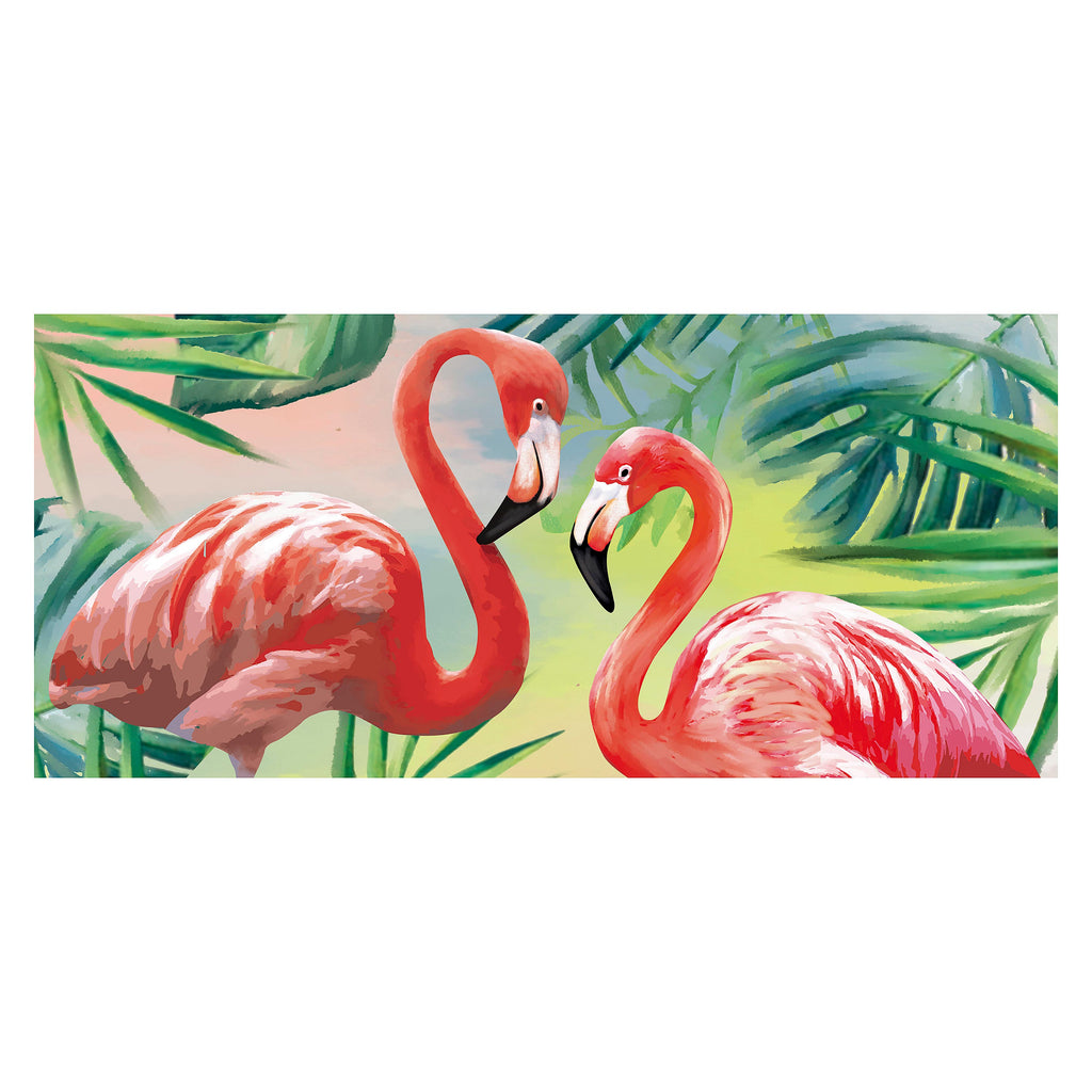The Flamingle Sassafras Switch Mat features vibrant flamingos set against a lush green background, perfect for adding a touch of summer to your entryway.