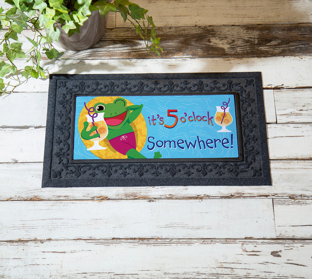 Brighten up your entryway with the whimsical 5'O Clock Frog Sassafras Switch Mat, featuring a playful frog design perfect for summer vibes.