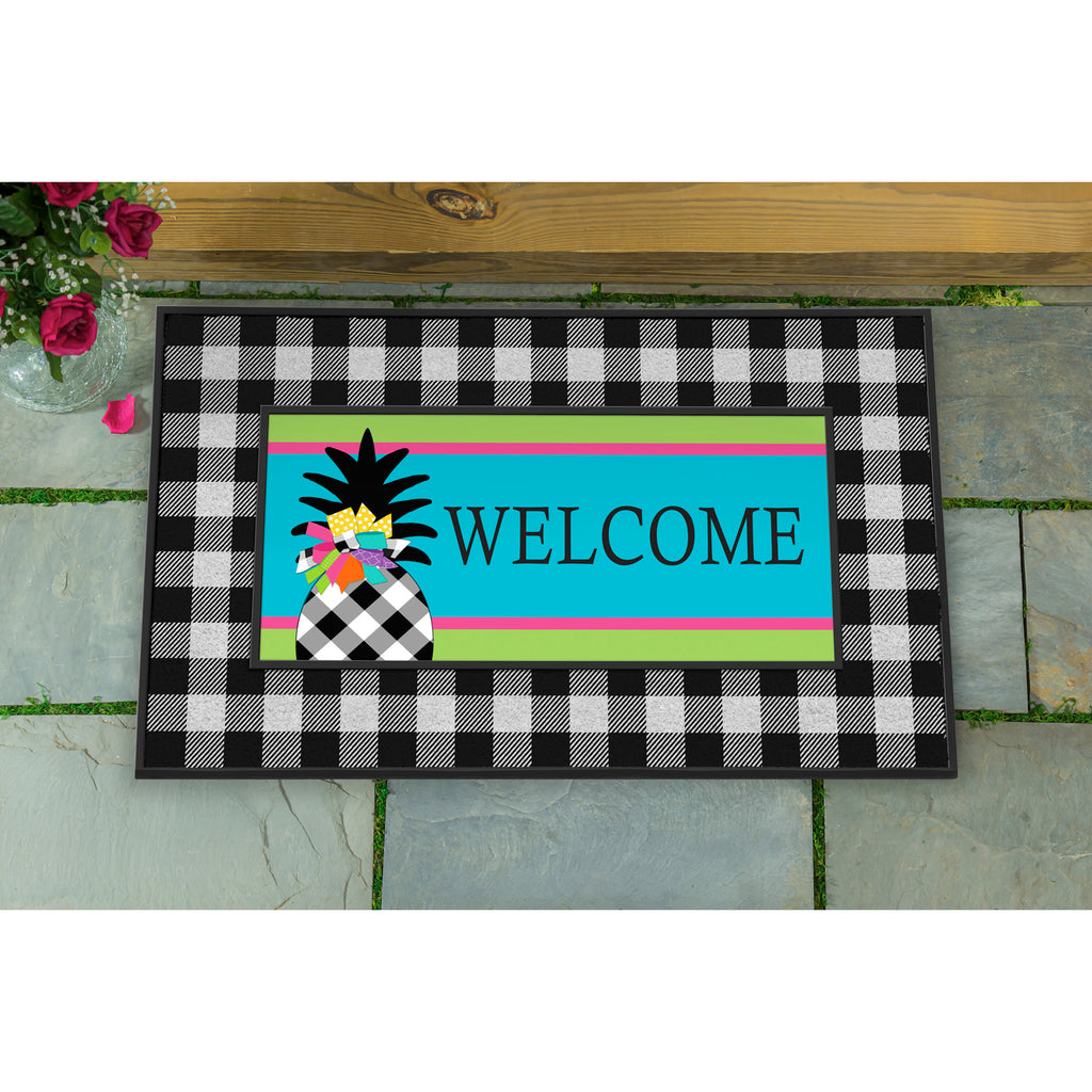 A doormat is a welcome addition to your home, greeting your friends & family. This seasonal, switchable Mat features a 10 x 22" space for Evergreen decorative door Mat inserts. This Mat frame is made of recycled rubber & is mildew resistant, featuring a skid-resistant backing to help keep the Mat in place. This Mat measures approximately 18 x 30" & is safe for indoor or outdoor use. For stains, simply spot clean with soap & warm water. Search for an Evergreen decorative door Mat inserts to pair with this switchable doormat frame for a new look year-round!
