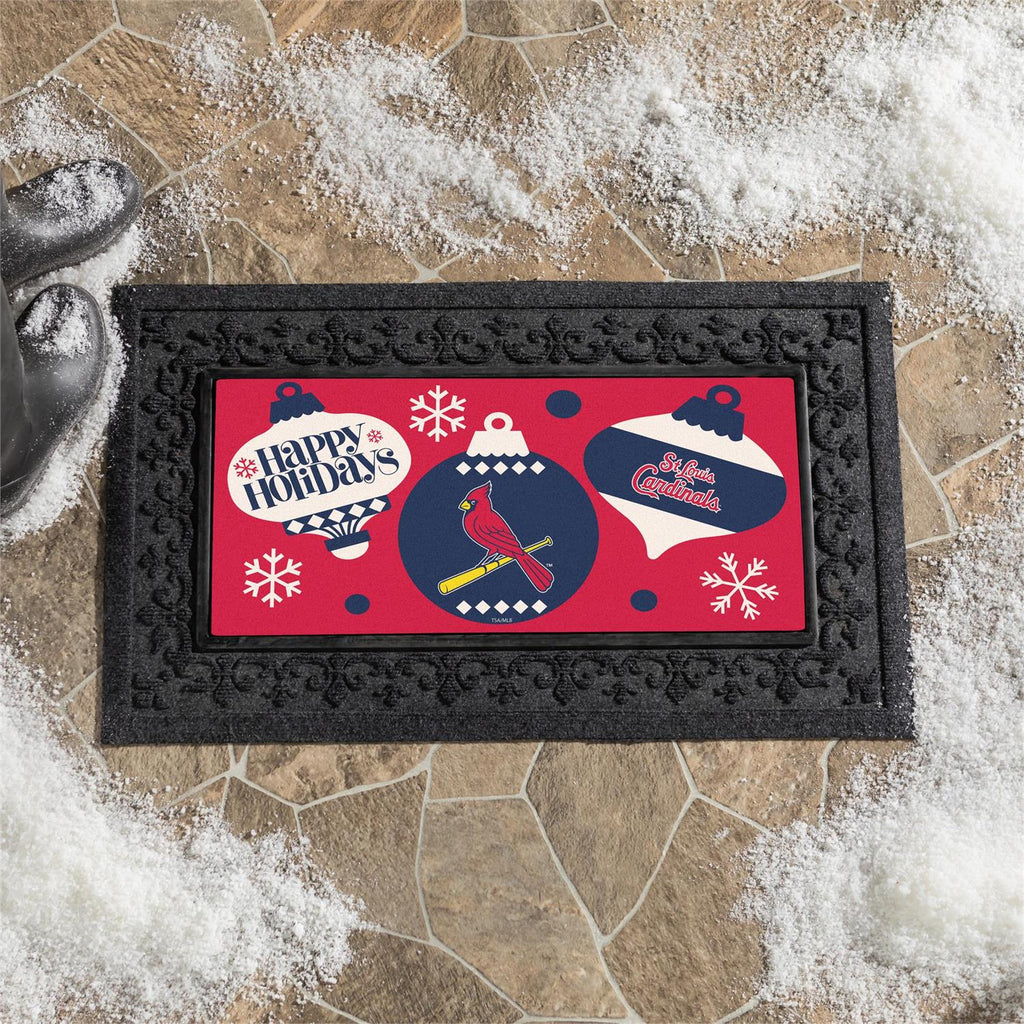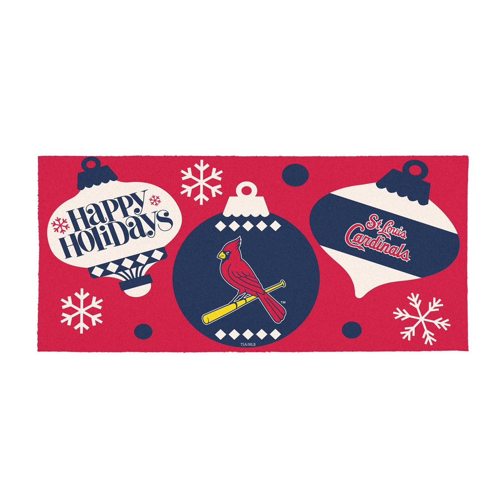 Celebrate the holiday season with the St. Louis Cardinals Holiday Flocked Coir Sassafras Switch Mat. This decorative mat, measuring 22 by 10 inches, is crafted from durable coir material, making it perfect for trapping dirt and debris. The vibrant design features holiday ornaments and the Cardinals logo, adding festive cheer to your doorstep. Its slim profile fits seamlessly in Sassafras bases, making it easy to switch out for other seasonal designs. Ideal for fans and those looking to add a sporty touch to their holiday décor.