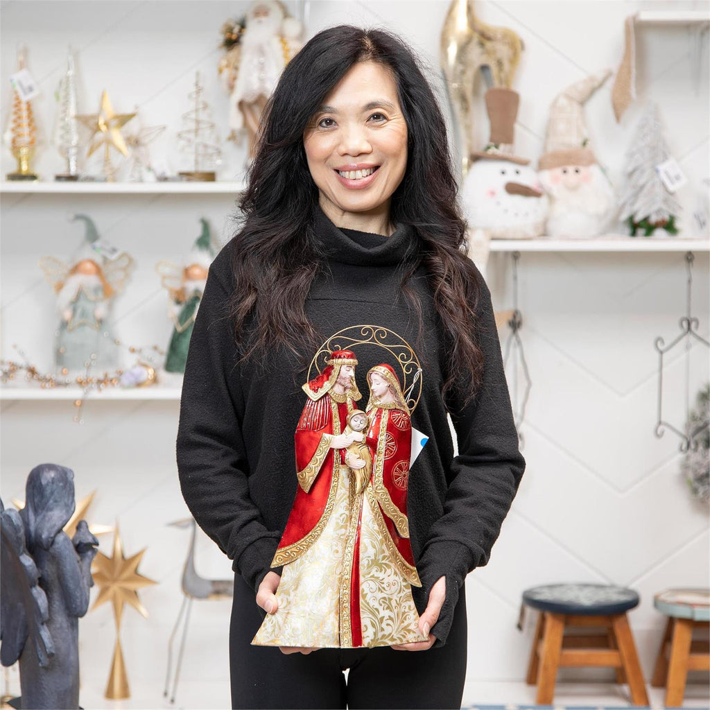 Celebrate the true spirit of Christmas with this exquisite Nativity Garden Statue. Standing at 16 inches high, this metal and capiz statue beautifully depicts the Holy Family, bringing a sense of peace and reverence to your outdoor space. The intricate detailing and rich colors make it a standout piece for your holiday décor. Perfect for gardens or as a centerpiece in your festive display, this statue captures the essence of the season. Its durable construction ensures it will be a cherished part of your holiday traditions for years to come.