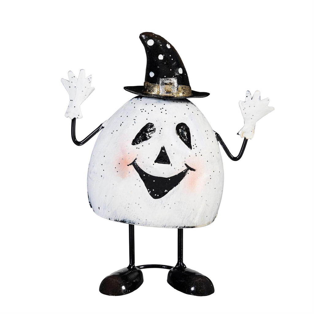 Add a touch of whimsy to your garden this Halloween season with the Ghostly Friends Metal Statue. Standing at 10 inches tall, this charming statue features a playful ghost and cat duo, each adorned with festive hats and cheerful expressions. Crafted from durable metal, it's designed to withstand outdoor conditions while bringing a lively spirit to your décor. Perfect for creating a fun and welcoming atmosphere, these figures make a delightful addition to pathways, porches, or garden beds.