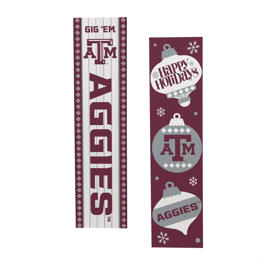 Celebrate the holiday season and showcase your Texas A&M pride with this versatile 46" Double Sided Leaner. Perfect for your porch or entryway, this leaner features festive designs that highlight your enthusiasm for the Aggies. Made with durable materials and measuring 47 x 11.25 inches, it offers a striking presence without overwhelming your space. The reversible design allows you to easily switch between displaying your team spirit and adding a touch of Christmas cheer, making it an ideal decoration all season long.