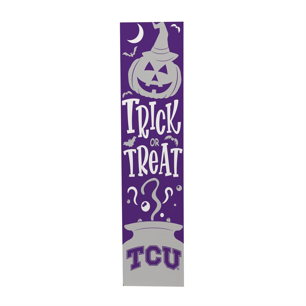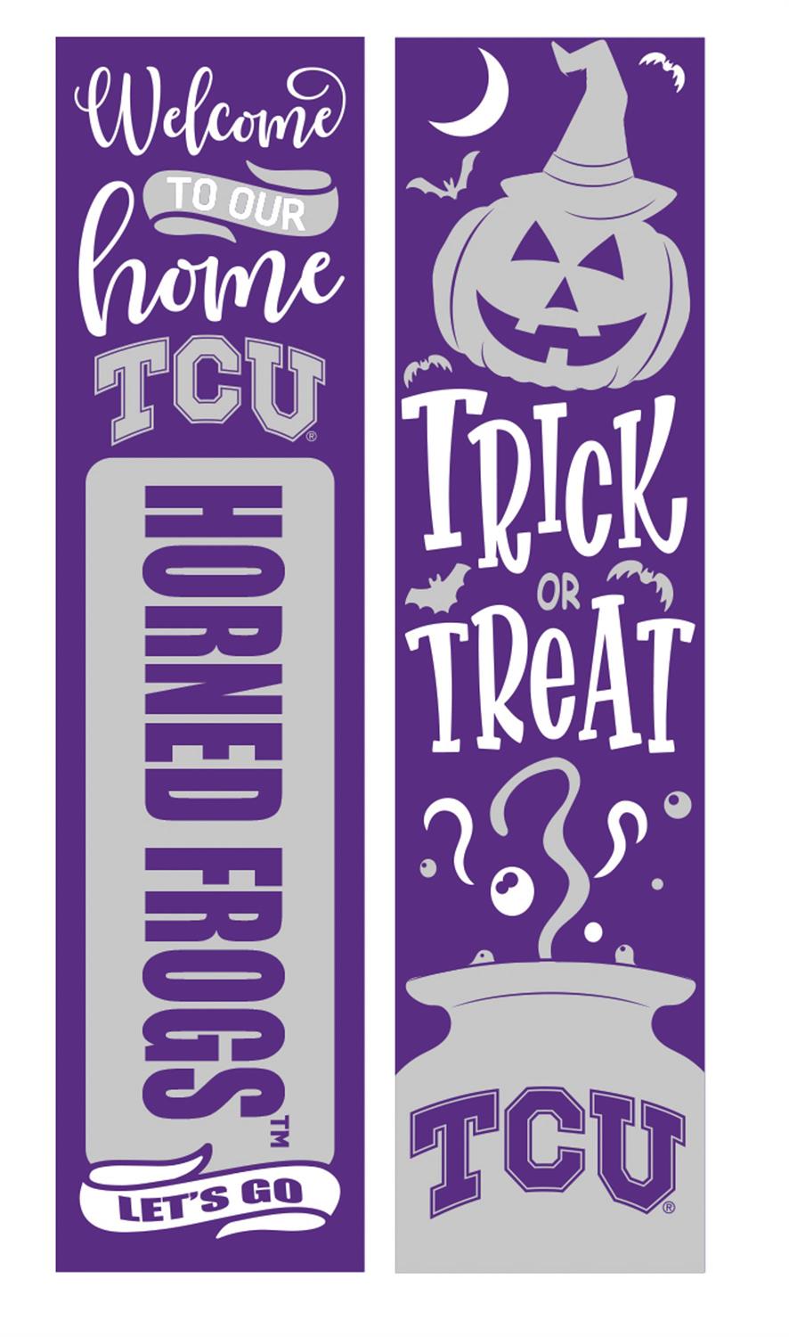 Show off your Texas Christian University pride with this double-sided porch leaner. Perfect for Halloween and beyond, this piece adds a spirited touch to any entryway or garden. Measuring 46 inches, it fits comfortably in a variety of spaces. The vibrant colors and bold lettering make it a standout decoration for TCU fans. Its durable construction ensures it will withstand seasonal weather changes, making it a reliable choice for outdoor displays.