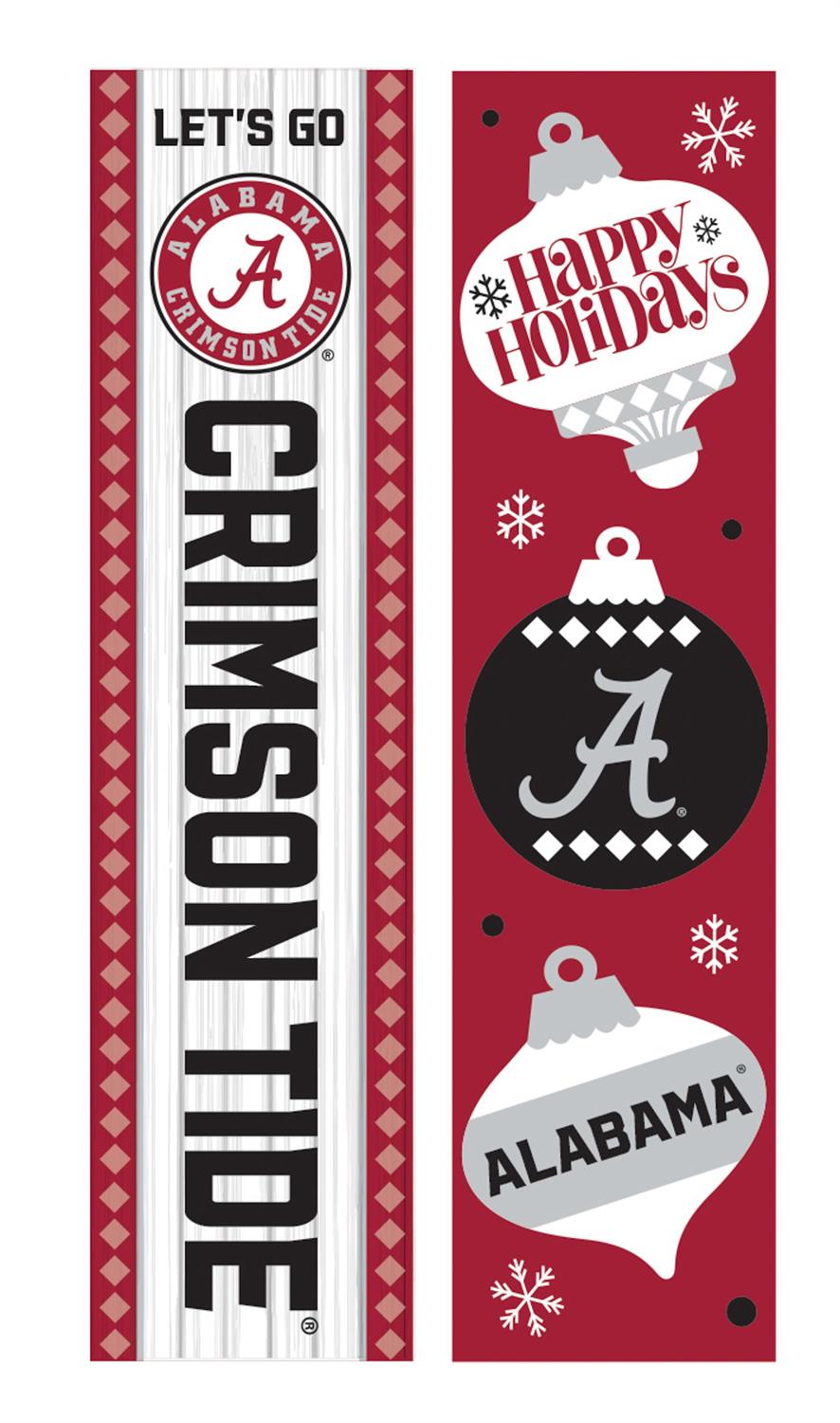 Showcase your University of Alabama pride with this 46" double-sided porch leaner. Perfect for the festive season, it features bold, eye-catching graphics that celebrate your favorite team, the Crimson Tide. Designed to enhance your porch or entryway, this leaner is made with durable materials to withstand the elements while maintaining vibrant colors. Its slim design ensures it fits seamlessly into any space, making it an ideal decorative piece for both indoor and outdoor settings. Make a statement this Christmas and let everyone know your team spirit.
